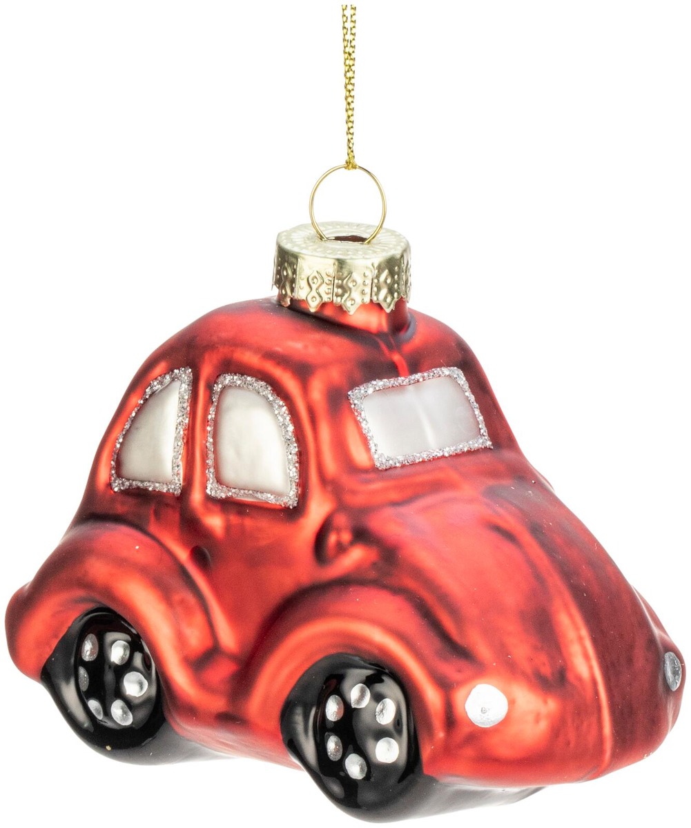 Weiste lasiauto 8x7cm punainen, valkoiset ikkunat, kimalle.