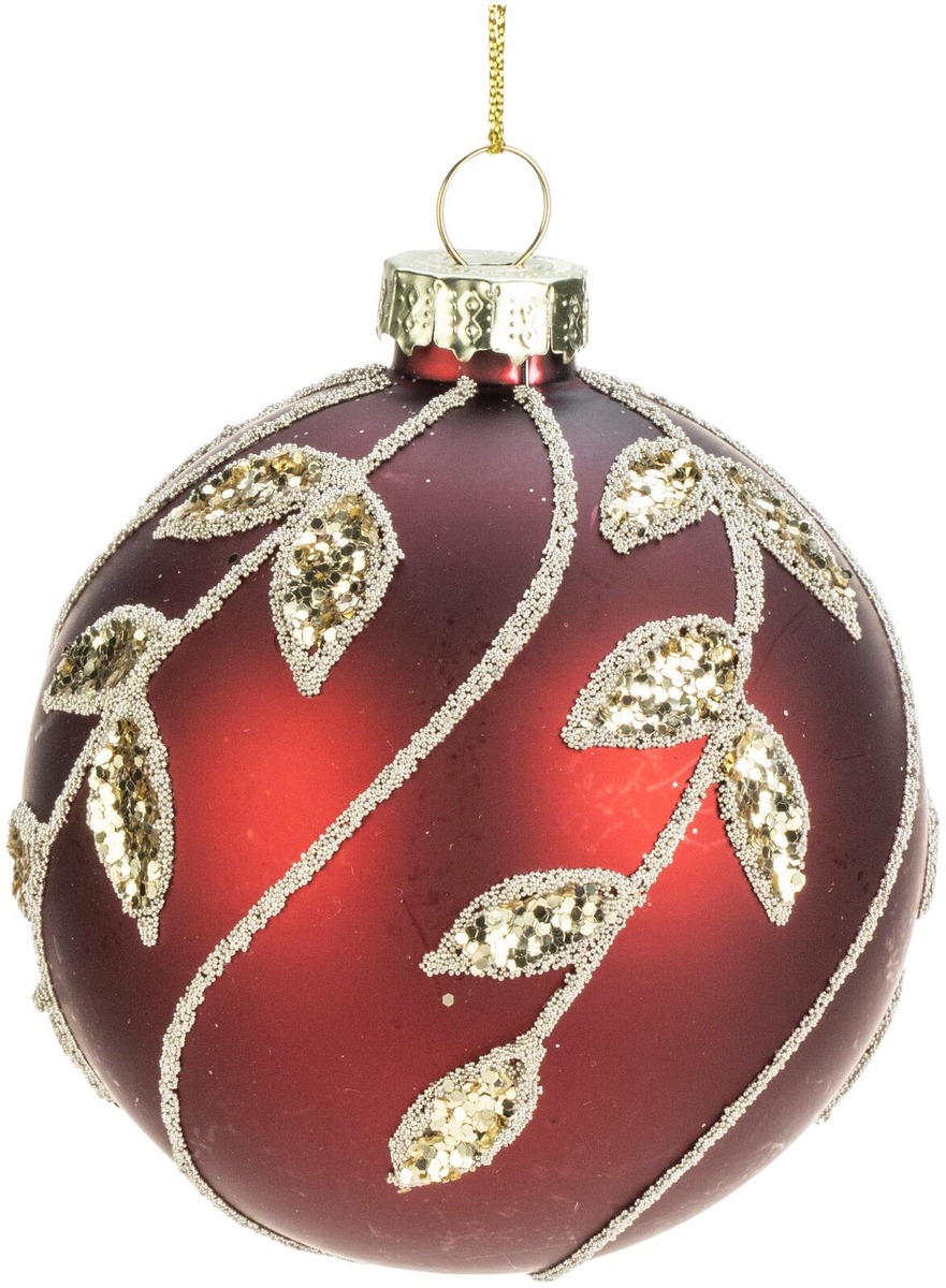 Weiste lasipallo 8cm viininpun. kultakimalle lehdet