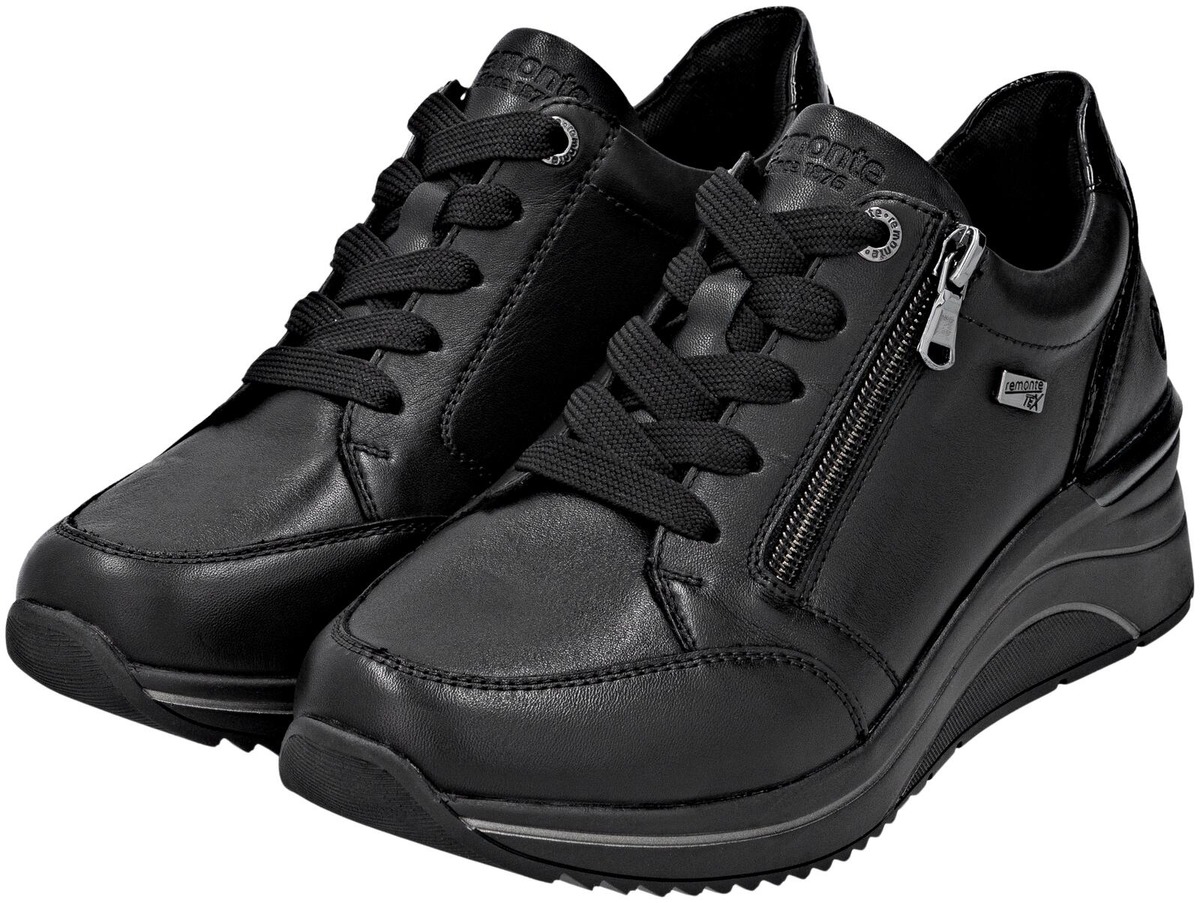 Tyylikkäät ja mukavat nahkaiset kävelykengät, jotka tarjoavat erinomaisen mukavuuden leveämmän lestin ansiosta. Vetoketju ulkoreunassa tekee pukemisesta helppoa, ja nauhat mahdollistavat täydellisen istuvuuden. RemonteTEX-kalvo-kalvo pitää jalat kuivina.