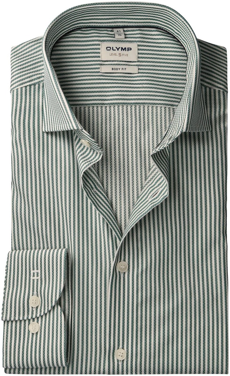 Laadukas Level Five -kauluspaita on 100% puuvillaa. Pystyraitaisessa kankaassa on kaunis Dobby -pinta. Kapearunkoisessa paidassa on Royal Kent -kaulus ja muotolaskokset takana. Vyötärön ympärys 98 cm koissa 39-40.