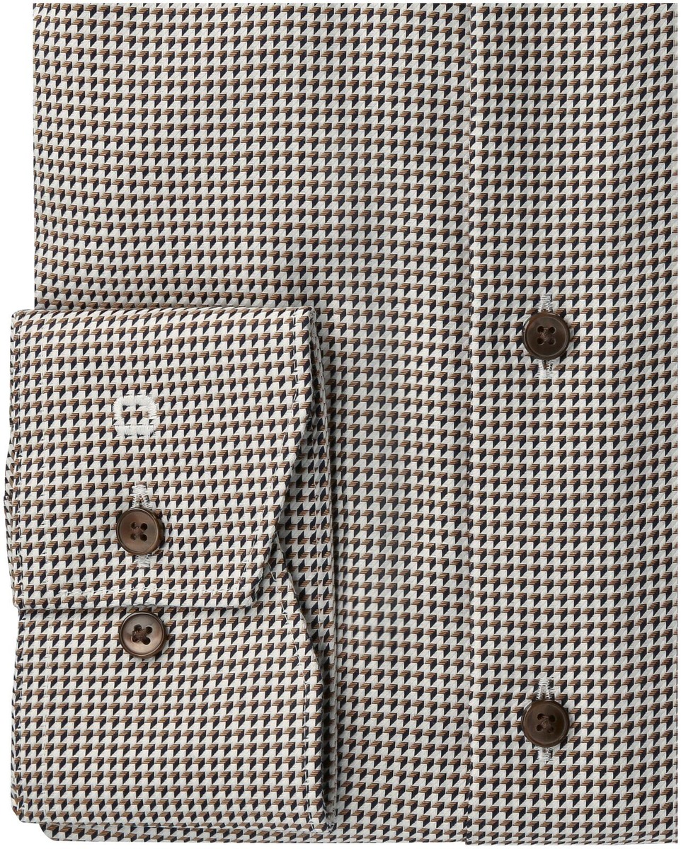 Laadukkaassa puuvilla- twillistä valmistetussa kauluspaidassa on Royal Kent -kaulus ja kauniiseen kudottuun kuosiin sopivat ruskeat napit. Tyylikäs paita on rintataskuton. Rinnan ympärys 126 cm ja vyötärön ympärys 112 cm koissa 41-42.