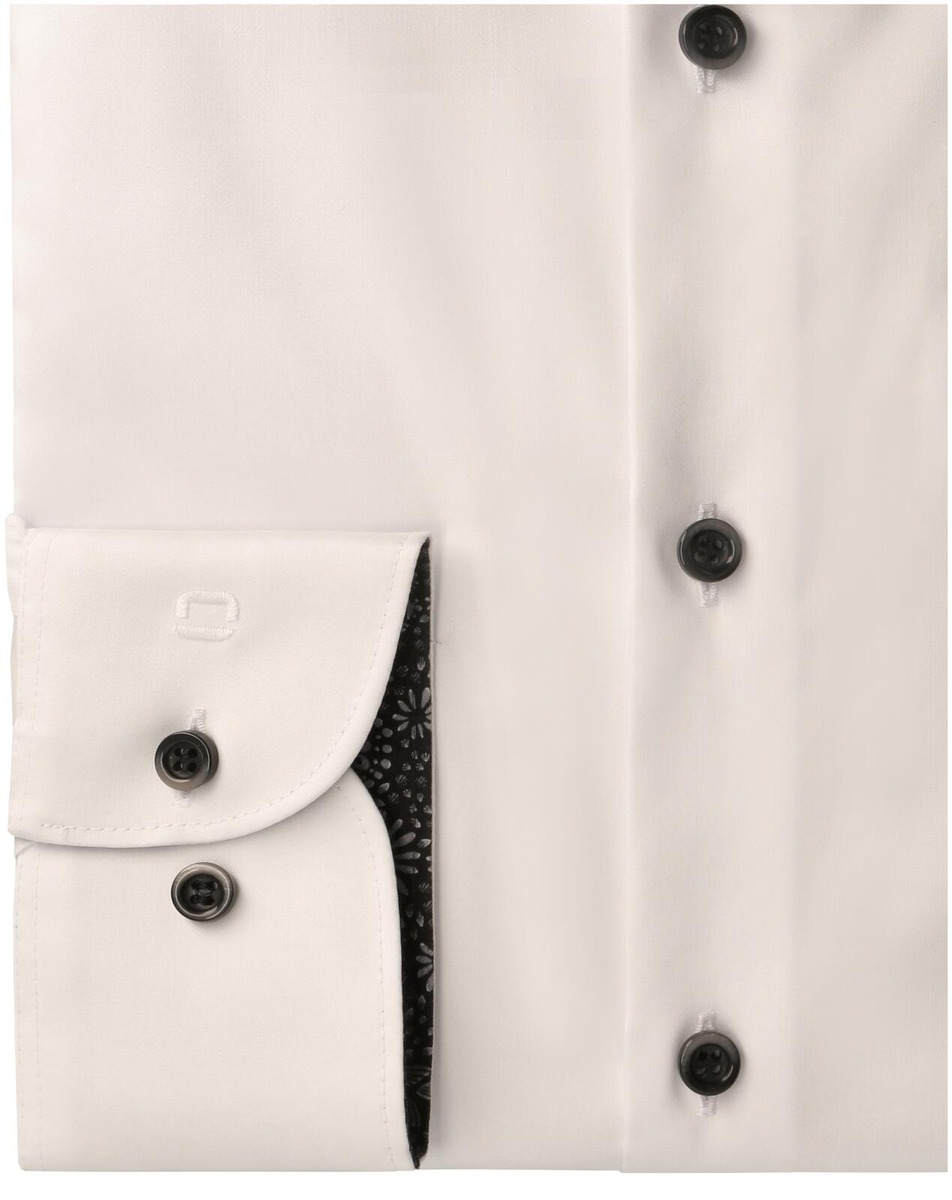 Valkoinen satiinipintainen paita sopii myös juhlavampiin tilaisuuksiin. Paidassa on Royal Kent -kaulus, tummat napit ja sisäpuolen viimeistelyssä on käytetty tummaa printtikangasta. Paidan materiaali on joustavaa ja helppohoitoista puuvilla - elastaania.