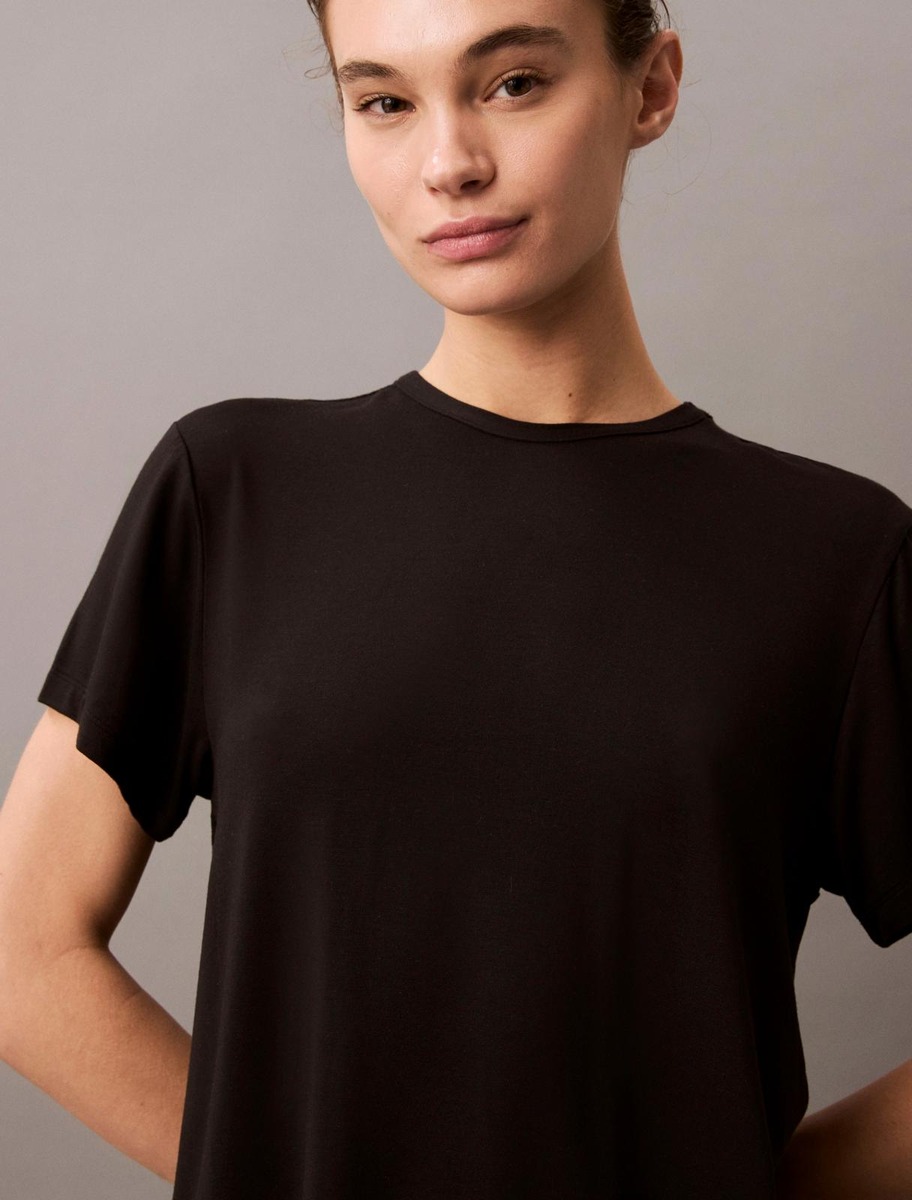 Paita on malliltaan rento. Modaalin ja elastaanin sekoitus on materiaalina hyvä. Joustava kangas myötäilee vartalonliikkeitä.
