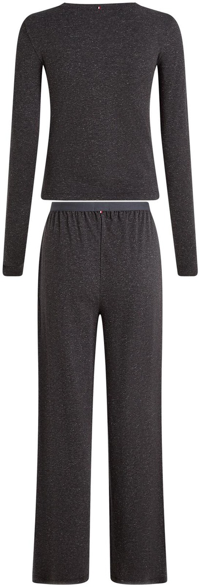 Pyjamasetin kauniisti kimalteleva kangas tuo arkeenkin ripauksen juhlaa. Settiin kuuluu pitkähihainen paita sekä suoralahkeiset housut. Housuissa on pehmeäntuntuinen kuminauhavyötärö.