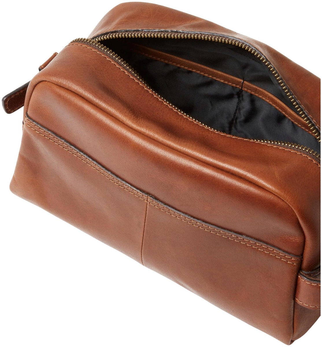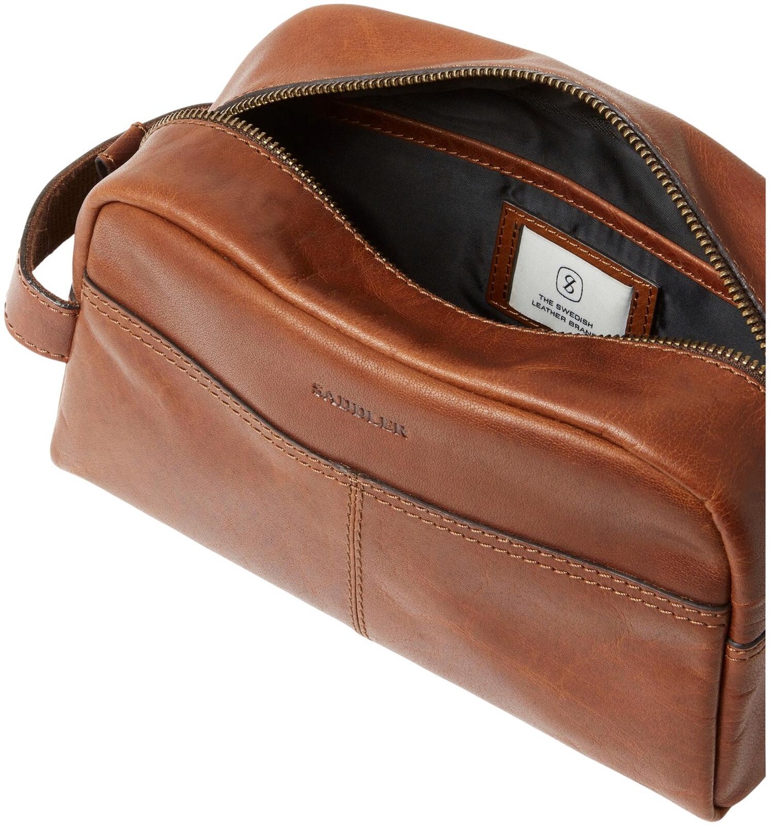 Tyylikäs nahkainen toilettilaukku on valmistettu LWG -sertifioidusta nahasta. Sisällä kolme avointa taskua. Vuori 100% nylonia.