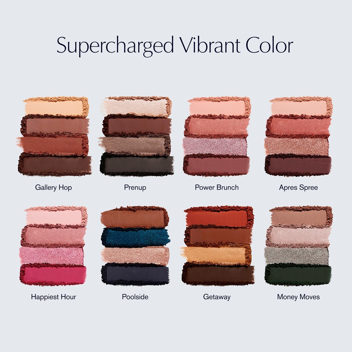 The Essential Eyeshadow Quad on luomiväripaletti, jonka avulla luot ikonisen silmämeikin – joka kerta. Paletin selkeä muotoilu tekee sen käytöstä helppoa. Pehmeät, runsaspigmenttiset luomivärit levittyvät upeasti, ja hoitava jojobaöljy saa ne tuntumaan silkkisen pehmeiltä. Saat intensiivisen, eloisan värin, joka kestää luomilla jopa 8 tuntia. Höyhenenkevyet väripigmentit liukuvat luomelle jo yhdellä levityskerralla ilman raitoja. Helppo häivyttää. Paletti on suunniteltu toimimaan täydellisesti myös aikuisella iholla. Värisävyt luovat välittömän blurraavan efektin, säilyttävät sävynsä muuttumattomina, eivät kasaannu luomivakoon eivätkä leviä – ja kestävät koko päivän.