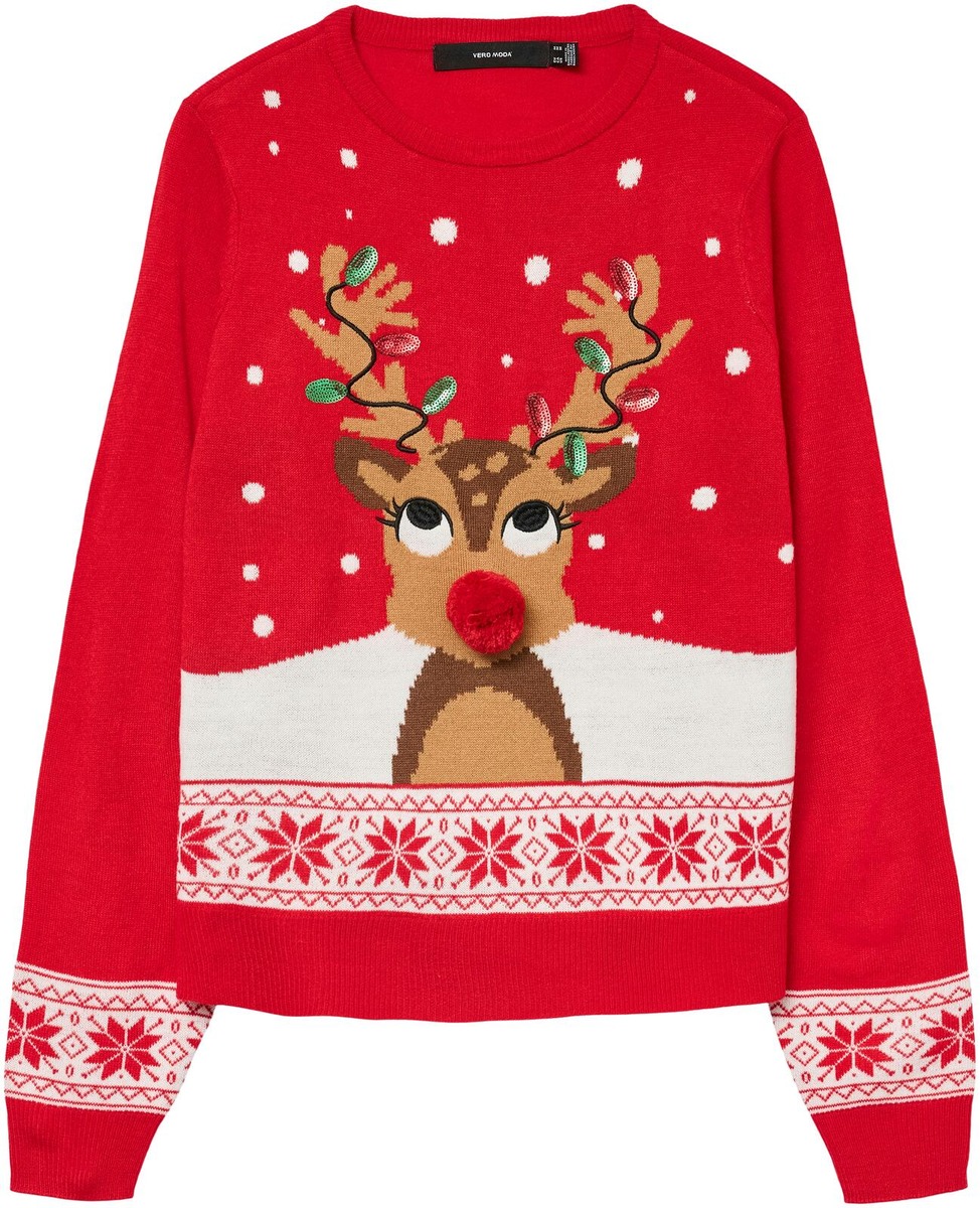 Hauska jouluaiheinen neulepusero pitkillä hihoilla ja pyöreällä pääntiellä.