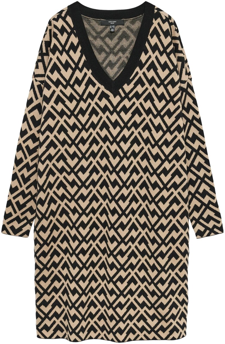 Pitkähihainen neulemekko lepakkohihoilla ja V-pääntiellä.