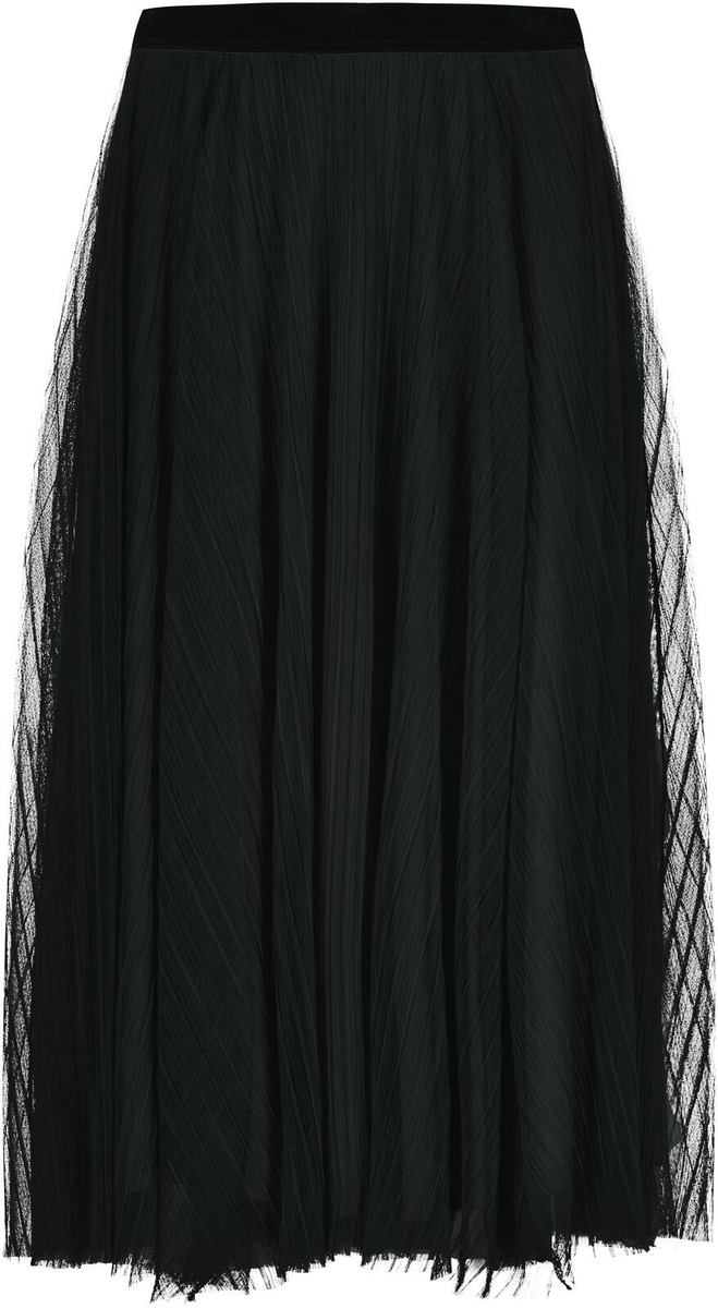 Kaunis hame normaalikorkuisella vyötäröllä. Harsomainen struktuuripinta samettisen alushameen päällä.