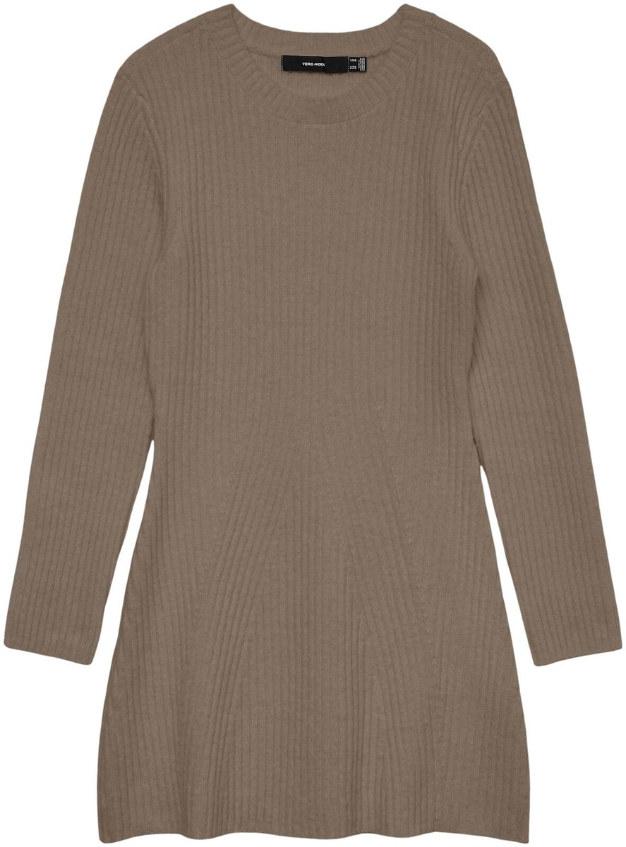 Pitkähihainen ribbineulemekko, jossa kaunis istuvuus ja laskeutuva helma.