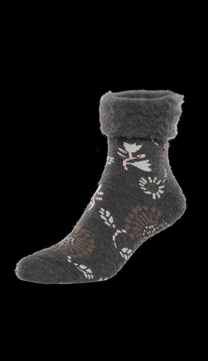 Sidosteen kukkakuvioinen perinteinen villapitoinen pörrösukka liukuesteillä.