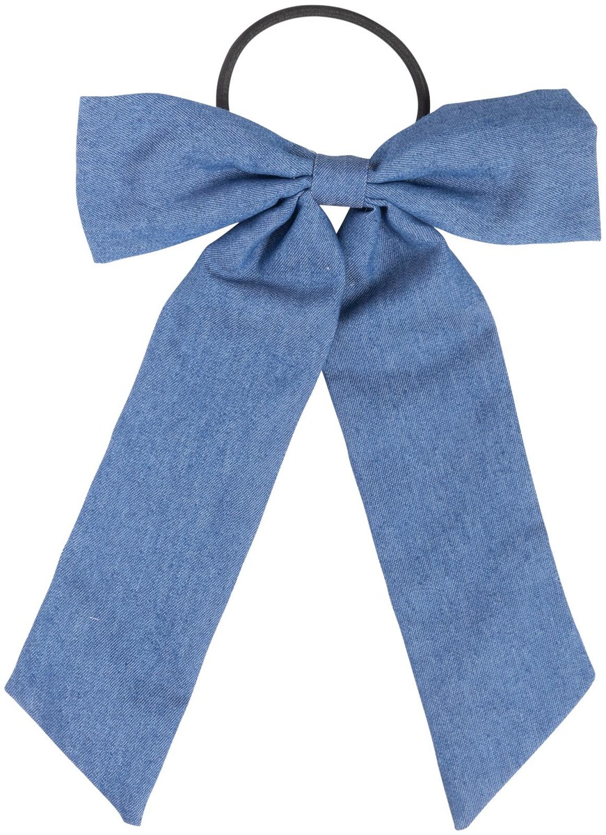 Trendikäs sinistä farkkukangasta oleva rusettihiuslenkki. Rusetin pituus noin 22 cm.
