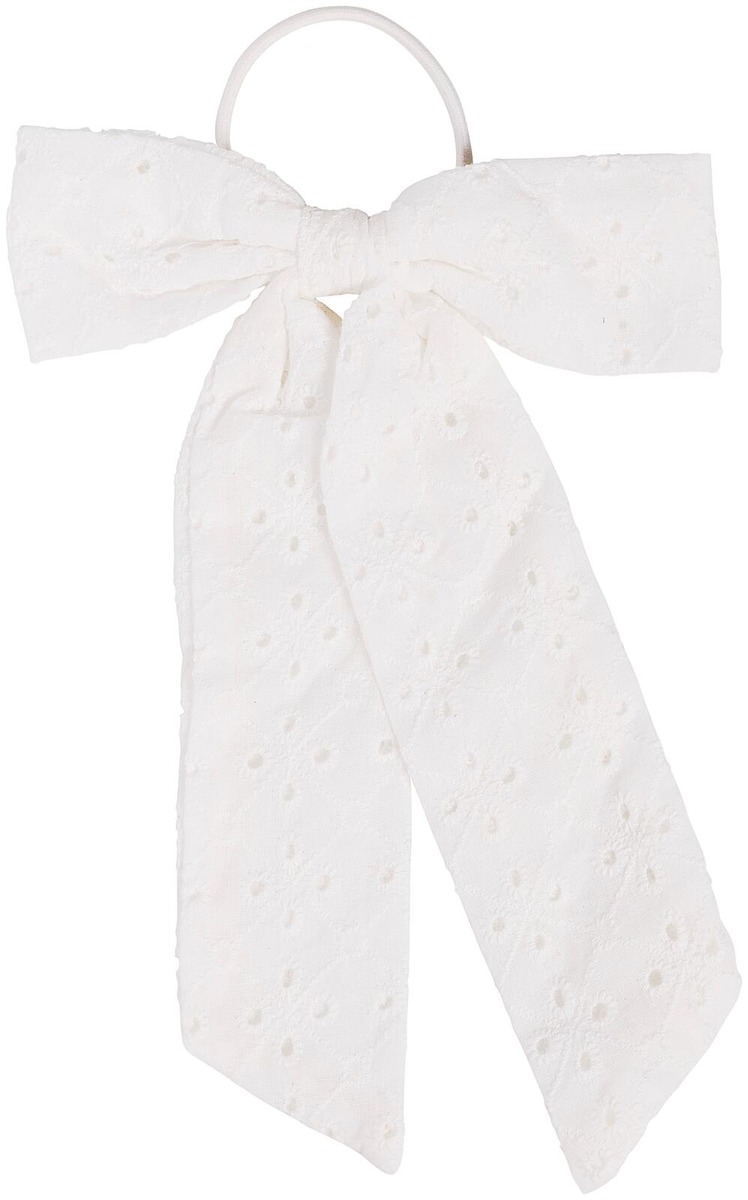 Kaunis pitsinen rusettihiuslenkki. Valkoisen rusetin pituus noin 22 cm.