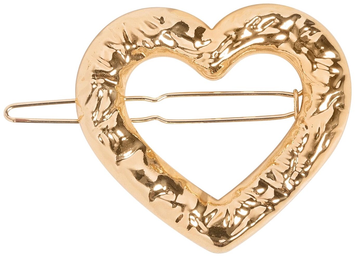 Sydänhiussolki kauniissa kullan värissä. Soljen leveys noin 6 cm.