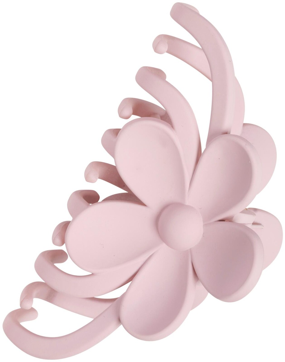 Trendikäs kukkahiussolki kauniissa vaaleanpunaisen sävyssä. Soljen leveys noin 9,5 cm.