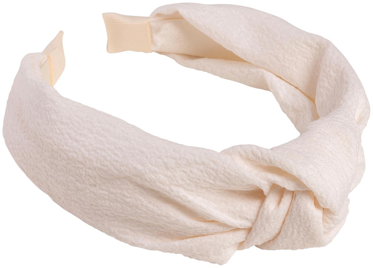 Ihastuttava solmuhiuspanta, kauniissa valkoisen sävyssä. Pannan leveys noin 5 cm.
