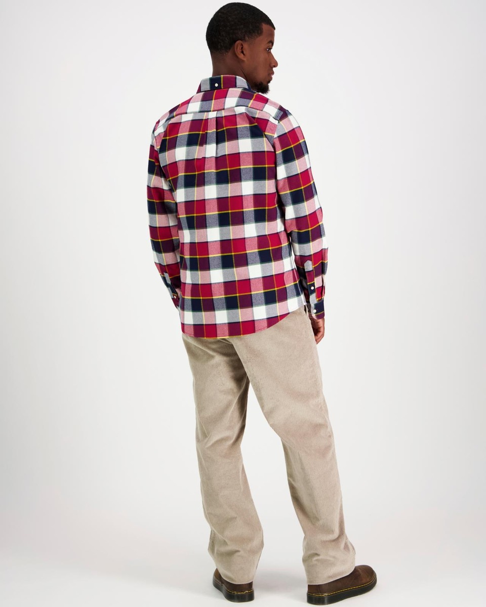 Barbour Valley flanellipaita on lämmin ja mukavan pehmeä päällä. Perinteinen, hieman suurempi, Country-Check ruutu on aina varma ja ajaton valinta rentoon arki ja vapaa-ajan pukeutumiseen. Raikkaan värimaailman ansiosta sopii hyvin käytettäväksi niin farkkujen kuin chinoksien kanssa. Paidassa on käyttäjän oikealla puolella rintatasku jossa Barbour-logo. Selän pituus 76-87 cm. 100% puuvilla. Normaali leikkaus.