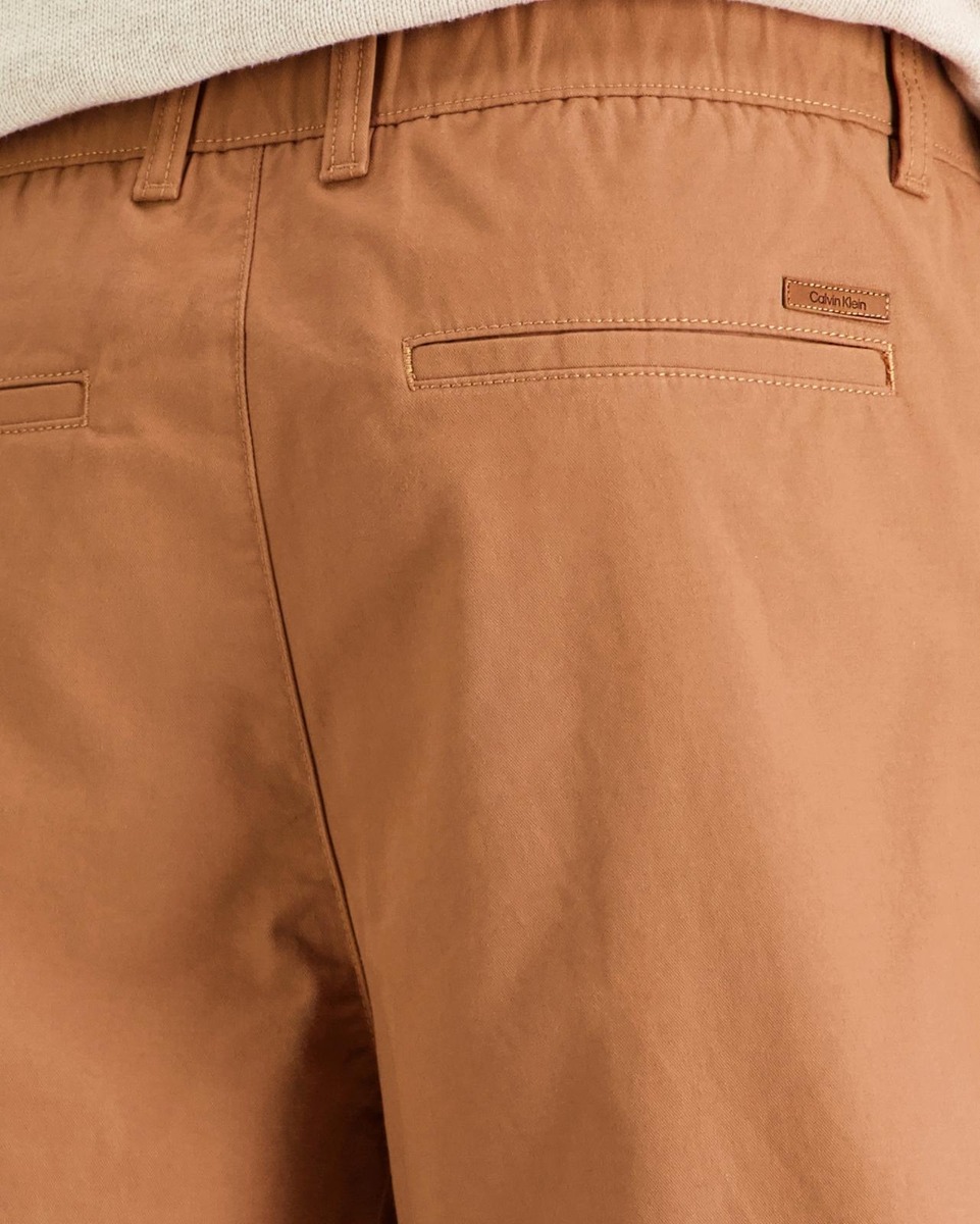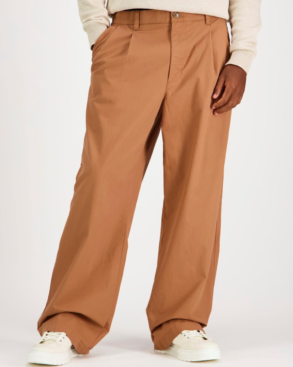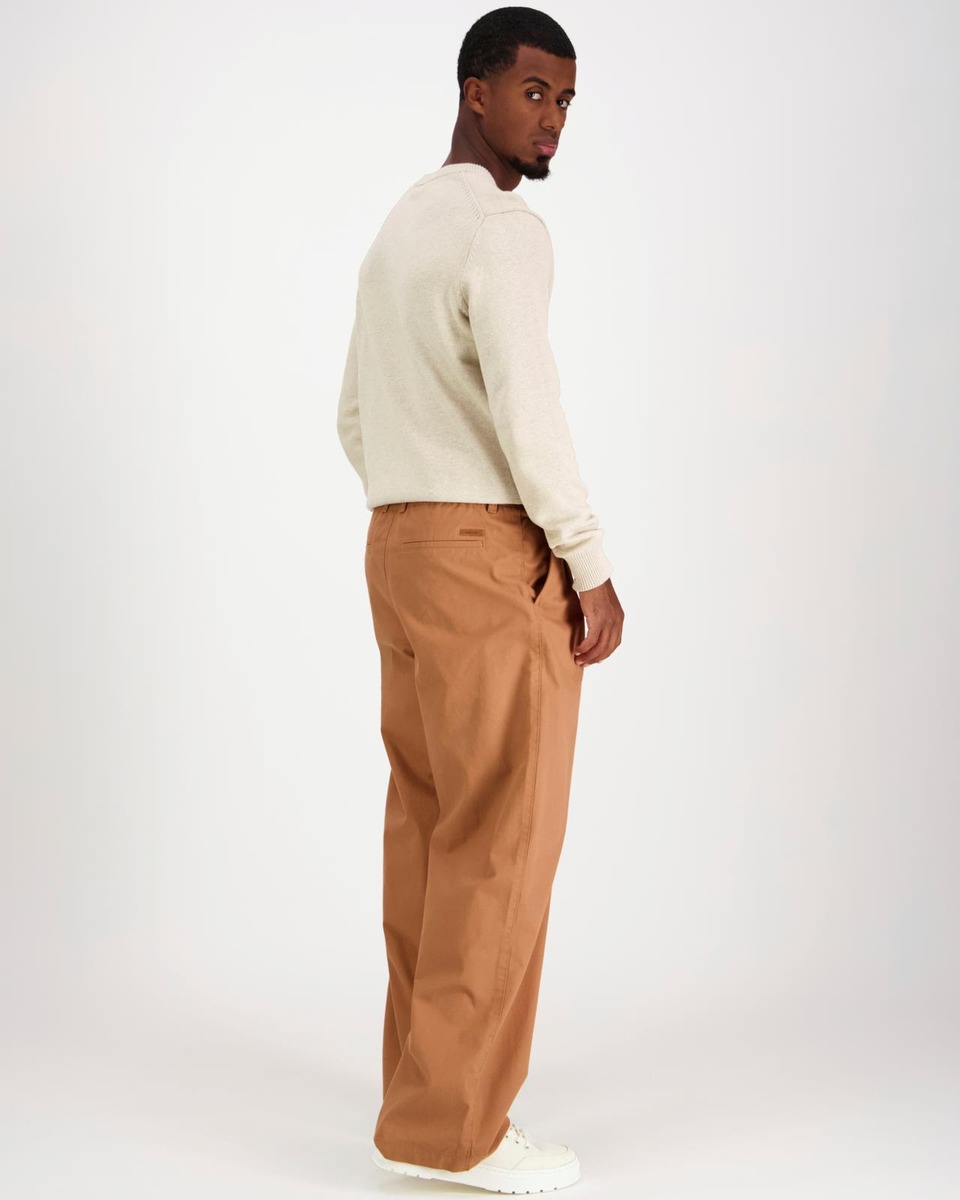 Miesten puuvillahousut, joissa vyötäröllä joustava resori, edessä laskokset, suora lahje