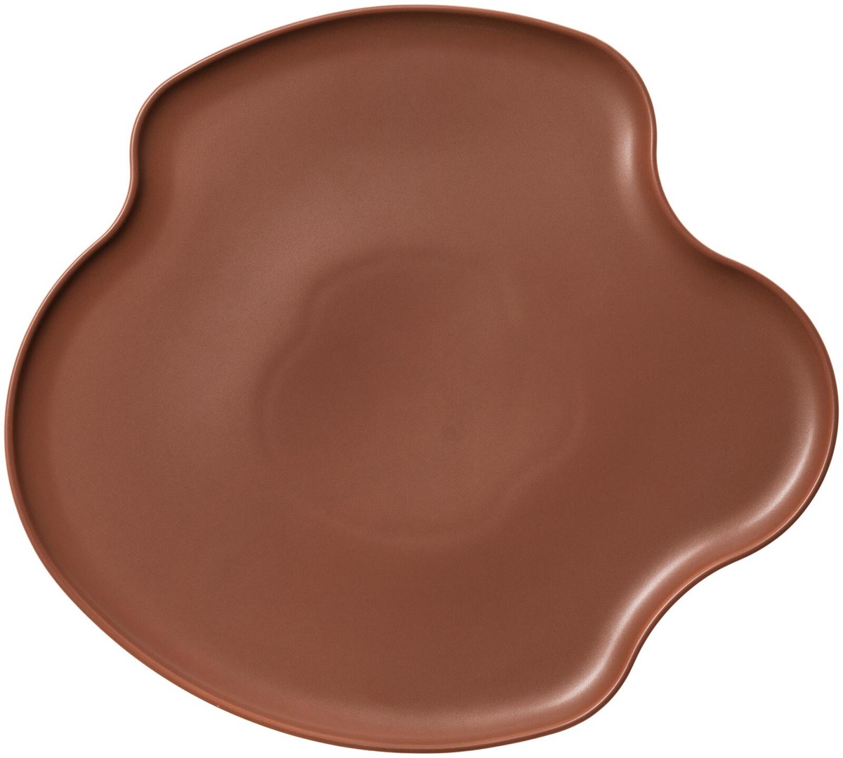 Näyttävä keramiikka-alusta syvässä terrakottaisessa sävyssä. Mittasuhteet ja mattalasite luovat monipuolisen esineen, jolla on arkkitehtuurista näyttävyyttä. Käytä sisustuksen keskipisteenä, käytännöllisenä tarjoilualustana tai itsenäisenä koristeellisena elementtinä. Täydentää kokoelman pienempiä kokoja yhtenäisen ilmeen luomiseksi.