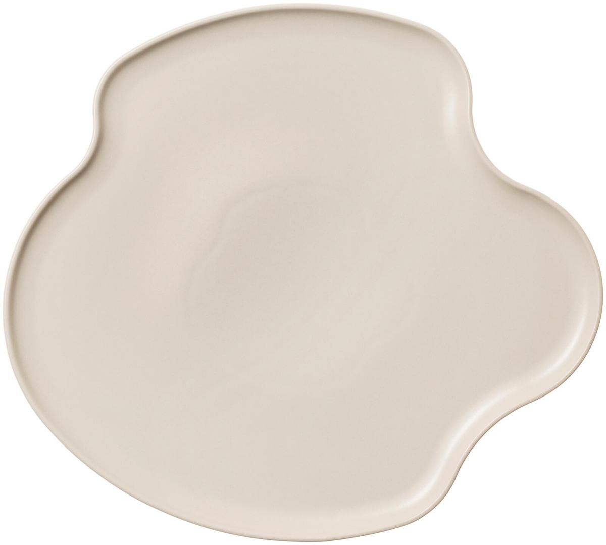 Suuri keramiikka-alusta elegantissa pehmeän beigen sävyssä. Mattalasite ja kiinnostavat mittasuhteet luovat monipuolisen esineen, jolla on arkkitehtuurista vaikuttavuutta. Täydellinen näyttävänä keskipisteenä, käytännöllisenä tarjoilualustana tai koristeellisena elementtinä. Yhdistä pienempiin kokoihin koordinoidun esillepanon luomiseksi.