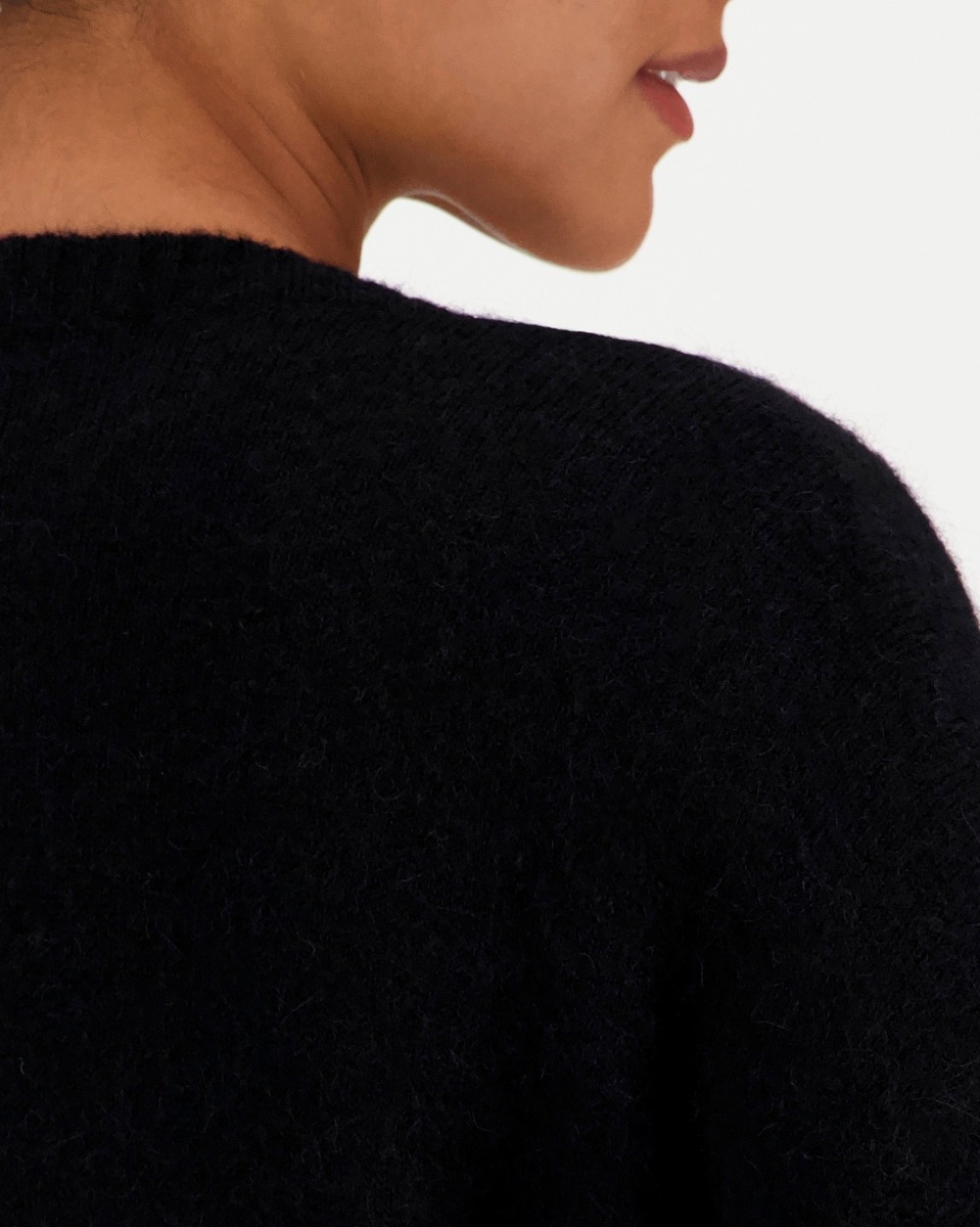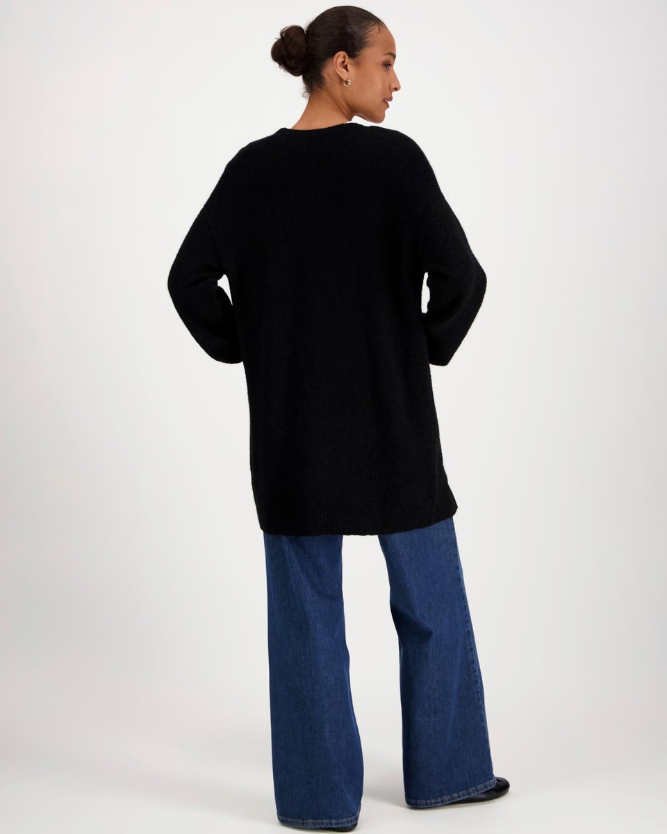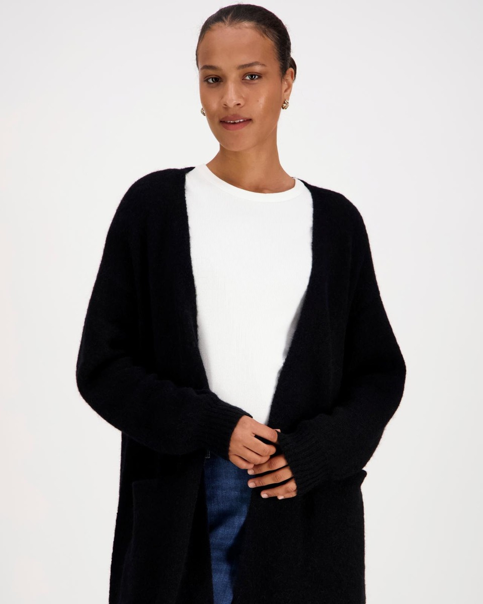 Naisten ylellinen Tuohi-neuletakki. Neuletakissa on täyspitkät hihat ja taskut edessä. Neuletakissa on resori helmassa ja hihansuissa. Neuletakin pituus koossa M on noin 80 cm.