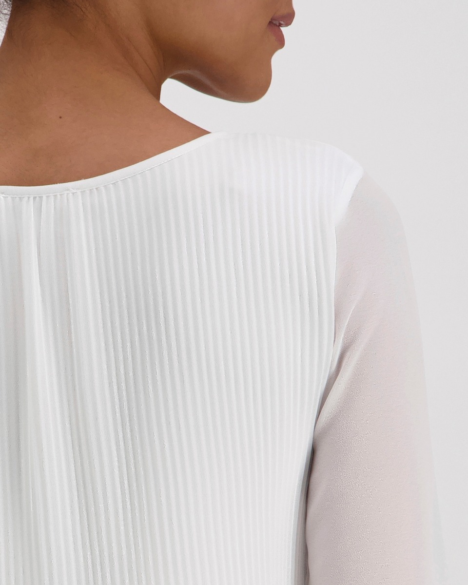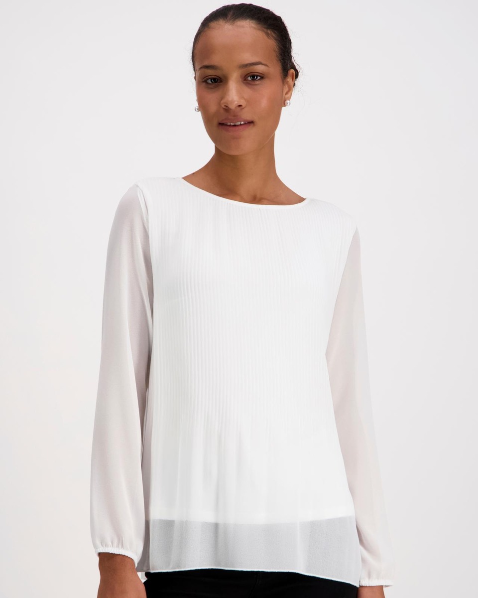 Aventuran pitkähihainen kangaspusero on kauniisti pliseerattu ja se on helposti yhdisteltävissä eri alaosiin arkeen tai juhlaan. Pusero on vuoritettu, ja sen hihat ovat hieman läpikuultavat. Materiaali hengittävää ja helppohoitoista kevyttä polyesteriä.