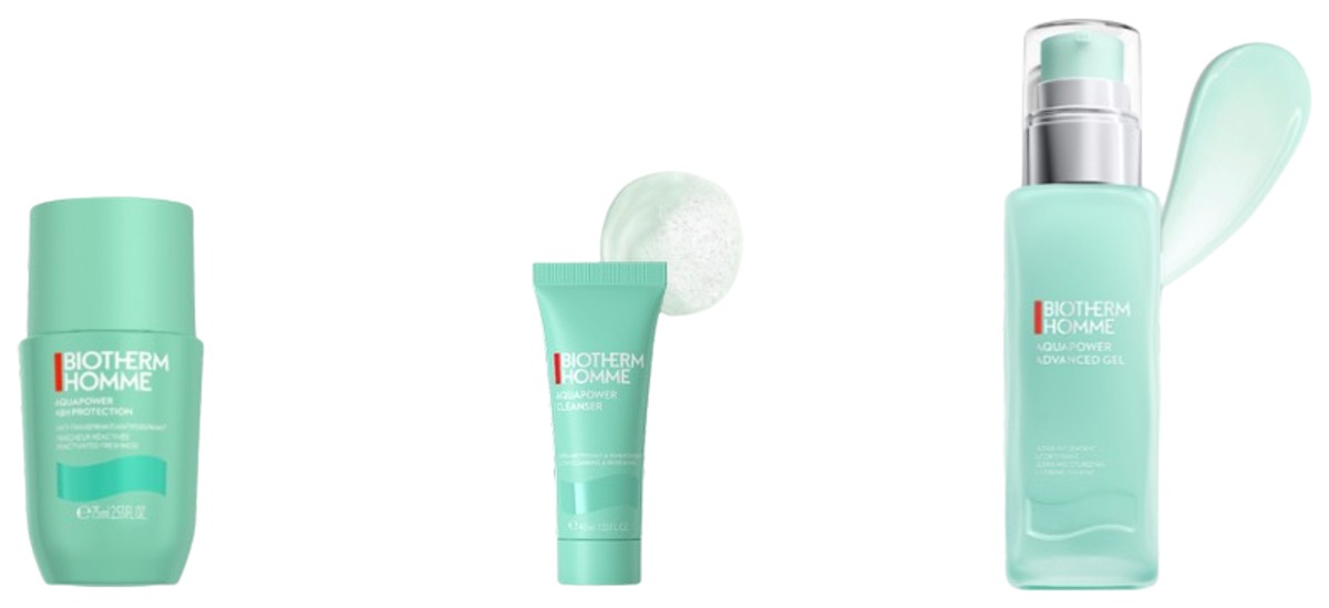 Biotherm Homme Aquapower Advanced Gel PNM 75 ml: Käytä kosteusvoidetta joka aamu ja ilta puhdistetulle iholle parranajon jälkeen saadaksesi maksimaalisen kosteutuksen. Purista pieni määrä kämmenellesi ja levitä kasvoillesi molemmin käsin. Aloita kasvojen keskeltä ja työstä ulospäin suuntautuvin liikkein. Lopeta kaulalle. Vältä silmänympärysihoa. Biotherm Homme Aquapower Cleanser 40 ml: Käytä joka aamu ennen parranajoa ja/tai päivän päätteeksi. Sitä voidaan käyttää myös suihkussa. Kostuta kasvot vedellä, levitä pieni määrä geeliä kämmenelle, vaahdota ja levitä kevyesti painellen koko kasvoille. Levitä vaahtoa pyörivin liikkein (välttäen silmiä) ja huuhtele huolellisesti vedellä. Biotherm Aquapower Ice Cooling Effect Antiperspirant 75 ml: Käytä suihkun jälkeen ohuena kerroksena molempien kainaloiden alla antamaan raikkaan ja pitkäkestoisen suojan hienhajua vastaan.