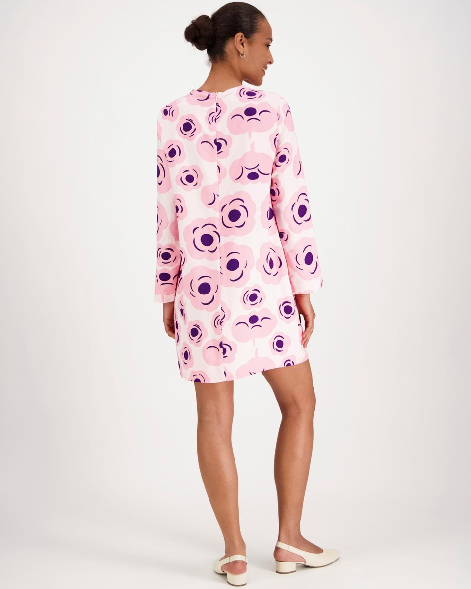 Karttua-mekossa on niukka istuvuus, A-linjainen leikkaus sekä Tumma-kuosi. Pitkähihaisessa mekossa on pyöreä pääntie, piilovetoketju keskitakasaumassa sekä sivusaumataskut. Rintamuotolaskokset sekä kyynärlaskokset antavat mekolle paremman istuvuuden.Tuote on valmistettu viskoosipellavasekoitteesta, joka sisältää 46 % kierrätettyä viskoosia, 29 % Tenceliä ja 25 % pellavaa. Mekot on leikattu koko kankaan leveydeltä, minkä vuoksi niiden ulkoasu saattaa hieman vaihdella. Jokainen tuote on yksilö. Maija Isola sai paljon virikkeitä työhönsä lukemattomilta matkoiltaan eri puolille maailmaa. Näyttävä kukkakuosi Tumma syntyi vuonna 1970 pitkän Pariisin-matkan tuliaisina.