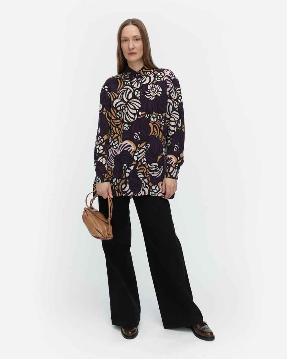 Runsas-kauluspuserossa on väljä istuvuus, suora leikkaus ja Torstai-kuosi. Kauluspaidassa on piilonappikiinnitys ja takana selkäkaarroke sekä laskokset. Hihansuissa on mansetit ja nappisuljenta. Helmassa on sivusaumahalkiot ja se on takaa hieman pidempi kuin edestä. Kauluspusero on valmistettu 100-prosenttisesta kuprosta. Tuotteen kupro on valmistettu puuvillatuotannon sivuvirroista. Paavo Halosen suunnittelema Torstai on ryöppy runsautta, kukoistava villipuutarha pioneilla ja ruusuilla. Työstöprosessissa värejä ja yksityiskohtia lisättiin päivittäin, tuloksena kuosi, joka lähes tuoksuu kukkakedolle.