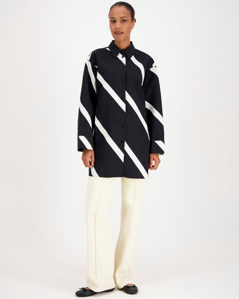 Heitto-kauluspuserossa on väljä istuvuus, suora leikkaus sekä Basso-kuosi, joka on painettu Helsingissä. Kauluspuserossa on nappisuljenta ja takana selkäkaarroke sekä laskokset. Hihansuissa on halkiot ja napitettavat mansetit ja helmassa on pyöristetty leikkaus sekä sivuhalkiot. Tuote on valmistettu puuvillapellavatvillistä, joka sisältää 65 % luomupuuvillaa ja 35 % pellavaa. Paidat on leikattu koko kankaan leveydeltä, minkä vuoksi niiden ulkoasu saattaa hieman vaihdella. Jokainen tuote on yksilö. Raidat ovat alusta alkaen rytmittäneet Marimekon kuviokieltä. Maija Isolan vuonna 1973 suunnittelema Basso on kuuluva, diagonaalinen raitakuosi, joka ottaa tilan haltuun.