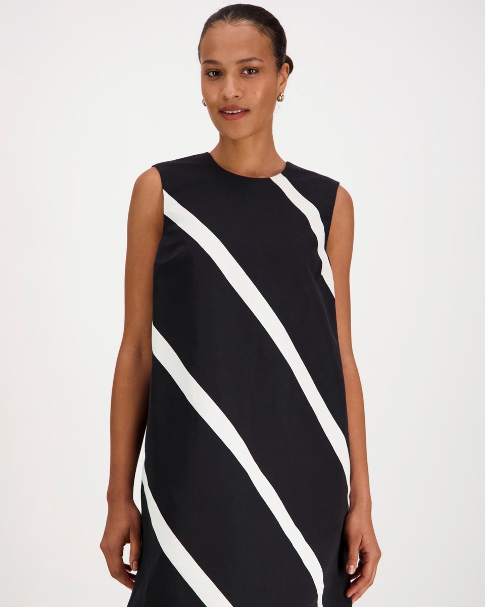 Sopiva-mekossa on niukka istuvuus, A-linjainen leikkaus sekä Basso-kuosi, joka on painettu Helsingissä. Hihattomassa mekossa on pyöreä pääntie, piilovetoketju keskitakasaumassa sekä sivusaumataskut. Tuote on valmistettu puuvillapellavatvillistä, joka sisältää 65 % luomupuuvillaa ja 35 % pellavaa. Mekot on leikattu koko kankaan leveydeltä, minkä vuoksi niiden ulkoasu saattaa hieman vaihdella. Jokainen tuote on yksilö. Raidat ovat alusta alkaen rytmittäneet Marimekon kuviokieltä. Maija Isolan vuonna 1973 suunnittelema Basso on kuuluva, diagonaalinen raitakuosi, joka ottaa tilan haltuun.