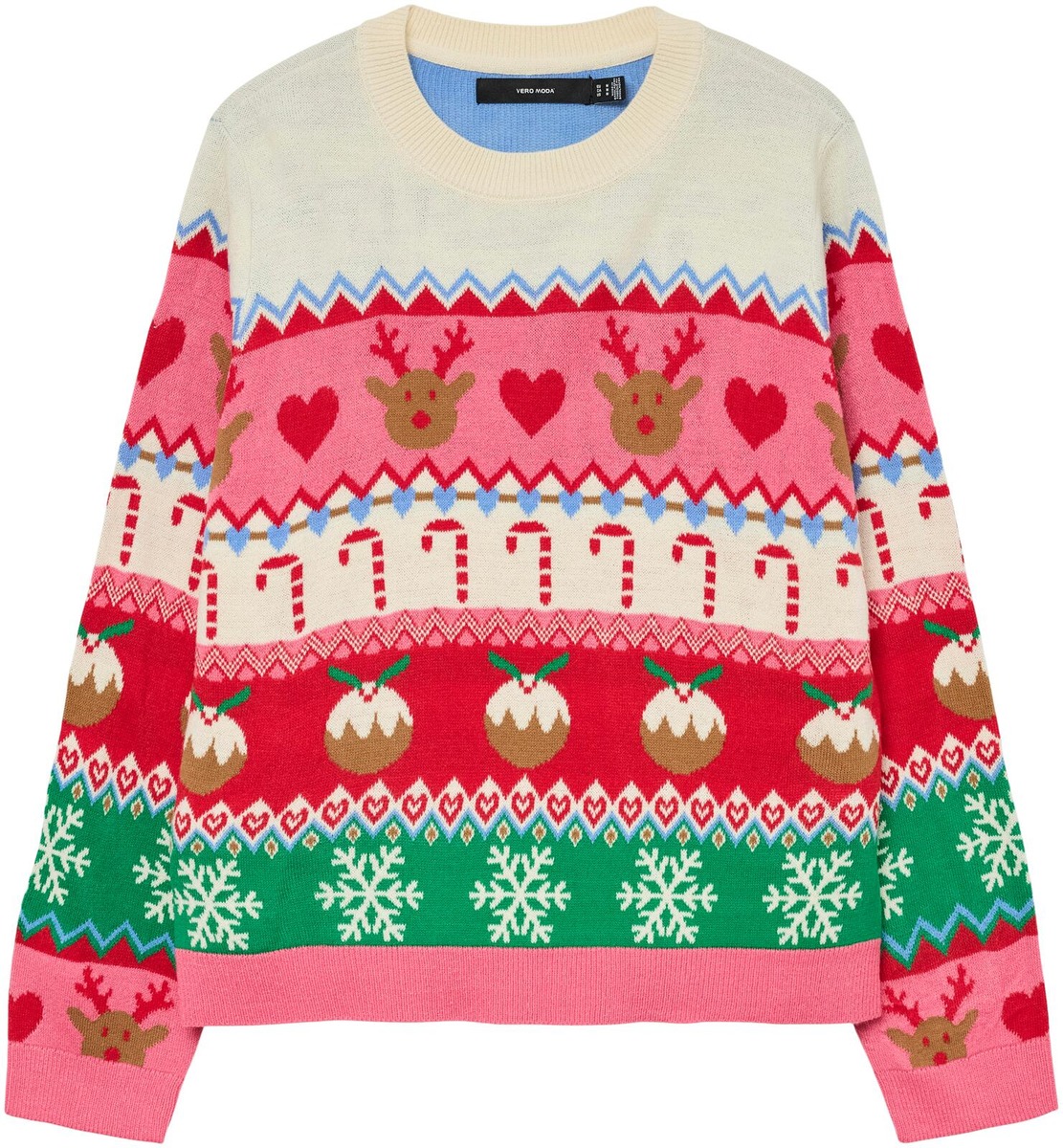 Hauska jouluaiheinen neulepusero. Pitkät hihat ja pyöreä pääntie.