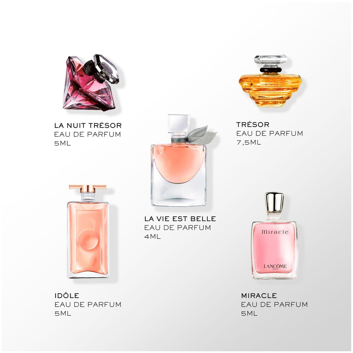 Sisältää: Tresor EdP 7,5ml, La Nuit Tresor EdP 5ml, Idole 5ml, La vie est Belle EdP 4ml & Miracle 5ml. Arvo 69 euroa.
