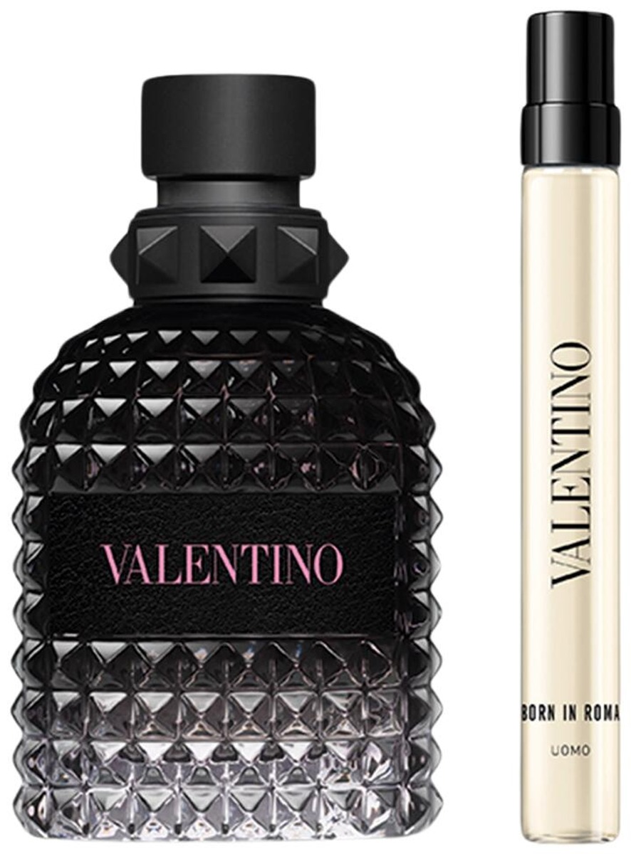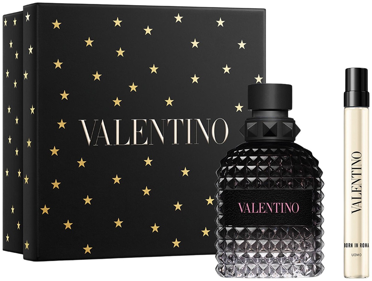 Valentino juhlistaa joulun aikaa Born in Roma Uomo Eau de Toilette -lahjasetillä – 50 ml + 10 ml, rajoitettu erä miehille, jotka säteilevät läsnäolollaan. Kultaisiin tähtiin ja sähköiseen energiaan kääritty setti sisältää täysikokoisen Eau de Toilette ja kätevän matkakoon. Born in Roma Uomo on moderni versio maskuliinisuudesta, jossa orvokinlehden, aromaattisen salvian ja savustetun vetiverin elinvoimaiset tuoksut luovat rohkean, tyylikkään ja hienostuneen lopputuloksen. Ikonisessa Valentino Rockstud -pullossa oleva lahjasetti on täydellinen hänelle – tai kenelle tahansa, joka haluaa näyttää aidon tyylinsä itsevarmasti ja tyylikkäästi.