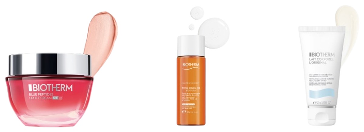 Blue Peptides Uplift Cream SPF30 Holiday Set on suunniteltu häivyttämään ikääntymisen merkkejä. Pakkauksen sisältö: Blue Peptides Uplift Day Cream SPF 30 50 ml + Biosource Total Renew Oil Cleanser 30 ml + Lait Corporel L'Original 50 ml. Blue Peptides Uplift Day Cream SPF30 50 ml: Selvitä näkyvästi kiinteämmän ihon ja säteilevän hehkun salaisuus Blue Peptides Uplift Cream -voiteella, joka kuuluu Biothermin uuteen Blue Peptides -ihonhoitosarjaan. Blue Peptides Uplift Cream on kosteuttava ja kiinteyttävä päivävoide kaikille ihotyypeille, eli sopii myös herkälle iholle. Huippuluokan life science -innovaatioita hyödyntävässä koostumuksessa yhdistyvät Biothermin Life Plankton™ -ainesosa ja kollageenipeptidifraktiot, jotka kompensoivat kollageenin katoamisen näkyviä merkkejä ihossa ja auttavat säilyttämään kiinteän ja näkyvästi kimmoisamman ihon. Biosource Total Renew Oil Cleanser 30 ml: Biotherm Biosource Total Renew Oil Cleanser. Vaahtoutuva puhdistusöljy, joka takaa kaksoispuhdistuksen yhdellä tuotteella. Puhdistaa tehokkaasti, mutta hellävaraisesti jopa vedenkestävän meikin. Tuote sopii erityisesti runsaan meikin puhdistukseen. Sisältää luonnon öljyjä, jotka hoitavat ihoa samalla tehokkaasti puhdistaen. Lopputuloksena puhdas, heleä ja kirkas iho. Sopii myös herkälle iholle. Lait Corporel L'Original 50 ml: Biotherm Lait Corporel L'Original on raikas vartalovoide, joka kosteuttaa ihoa 48 tuntia, imeytyy nopeasti ja vahvistaa vartalon ihon suojaa heti ensimmäisellä käyttökerralla. Sopii kaikille ihotyypeille.