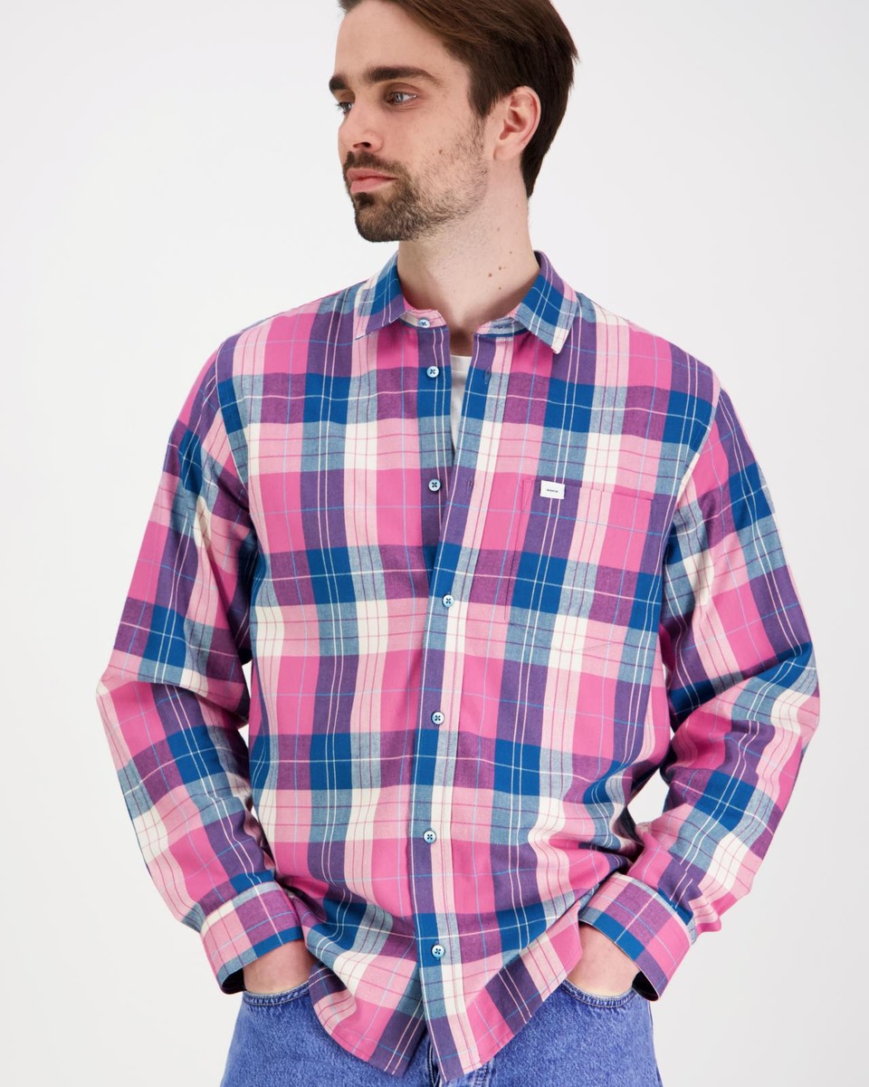 Napillinen paita, jossa on klassinen ruutukuvio. Valmistettu puuvillan ja viskoosin sekoitteesta.
