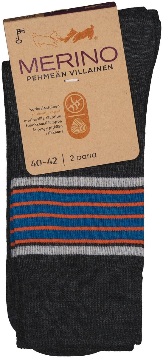 Sidosteen lämmin nilkkasukka merinovillaa. 2 parin nippu, sukansuuraidoin ja yksivärinen.