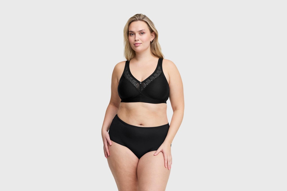 Luomupuuvilla kohtaa hienostuneen pitsin rakastetussa Stars Cotton -puuvillassamme. Valkoisen painoksen jälkeen. Voitimme sydämiä, tiesimme, että oli aika tuoda se teille mustana. Jokapäiväinen puuvillamukavuus, koholla jokaisessa saumassa.