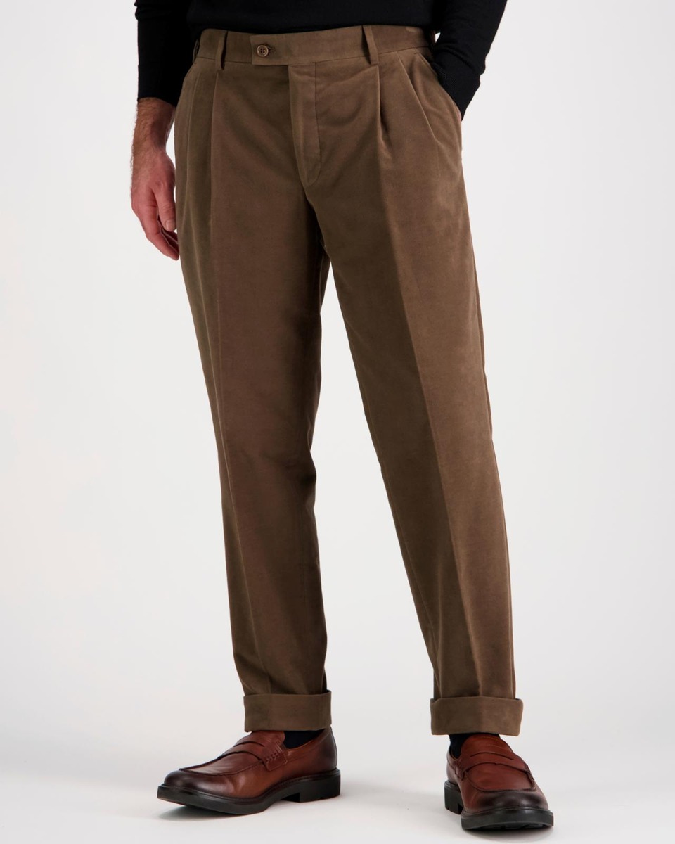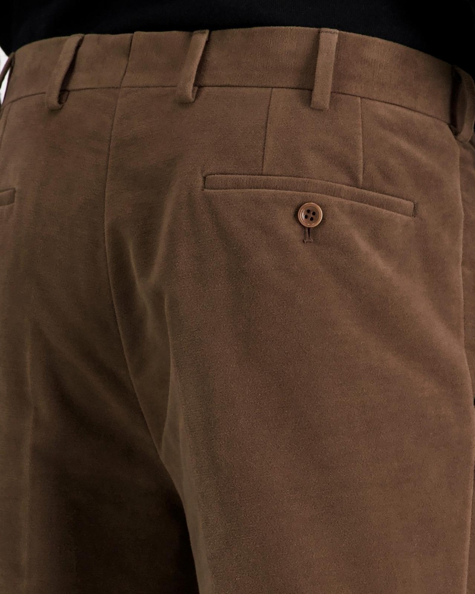 Keskiruskeat, ikoniset moleskin-puuvillahousut. Kankaan pehmeys ja mukavuus korostuu entisestään vekillisen Seattle -mallin myötä.