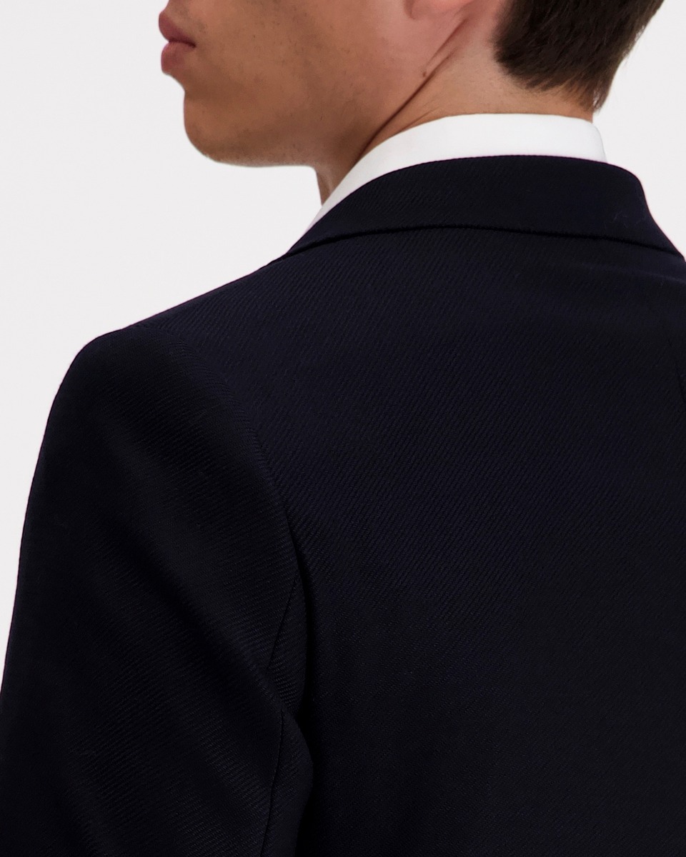 Yönsininen Athlete fit -puvuntakki innovatiivisesti kudotusta, italialaisesta villakankaasta. Värin puolesta puku täyttää tumman puvun kriteerit, mutta kankaan kekseliäs kudonta näyttää erinomaiselta myös rennommassa kokonaisuudessa. Turon ainutlaatuinen Athlete fit tuo tilaa treenatun vartalon lihaksille ja korostaa samalla kapeaa vyötäröä. Puvuntakki on yhdistettävissä Hilton 6576 housuihin.
