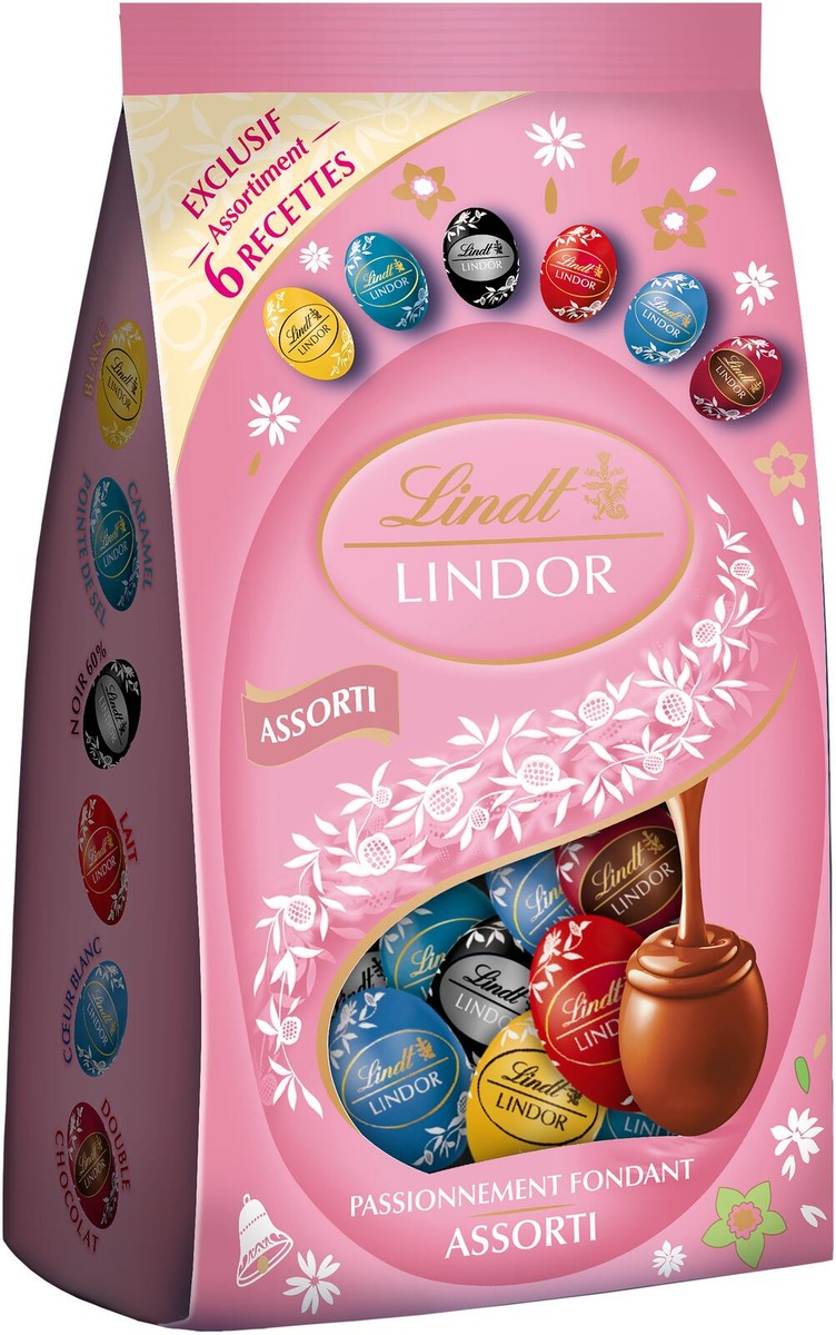 Löydä pääsiäisen taikaa tästä LINDOR-munapussista! Lajitelma sisältää pieniä täytesuklaamunia 6 eri maussa 350 gramman pussissa, joka sopii erinomaisesti jaettavaksi ystävien ja perheen kanssa. Ainutlaatuiseen lajitelmaan kuuluvat vastustamattomat maut: LINDOR maitosuklaa, valkosuklaa, suolakaramelli, 60% tumma suklaa sekä maitosuklaa valkoisella täytteellä ja tummalla täytteellä. Monipuolisesta lajitelmasta löytyvät suosikkimaut koko perheelle.