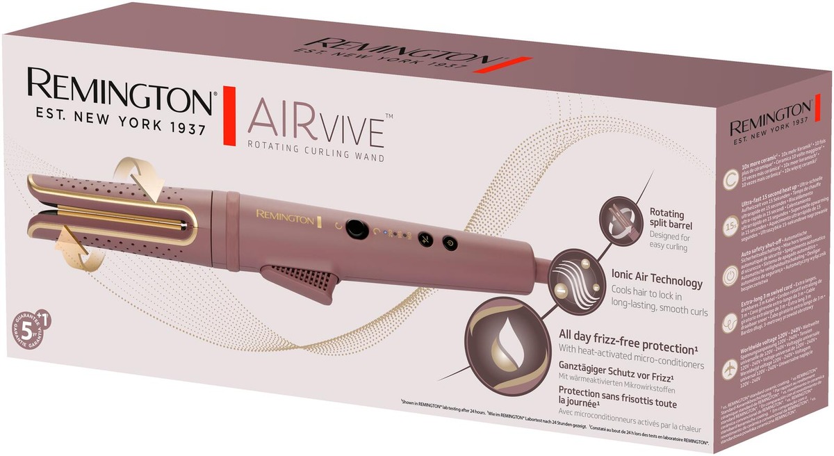 REMINGTON® AIRvive™ tuotesarja tuo uusia tuulia hiusten muotoiluun. Ionic Air teknologia ja lämmöstä aktivoituvat hoitavat mikroainesosat silottavat hiuksen pintaa. Ne lukitsevat kosteuden hiuksen sisään niin kihartamisen, suoristamisen kuin kuivauksen aikana. Lopputuloksena on upea, kestävä kampaus – joka kerta.