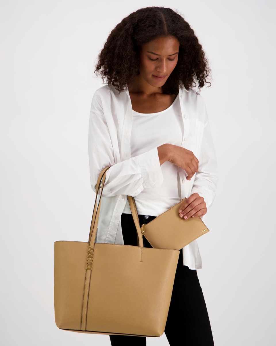 Sisällä avotasku ja irrotettava sisäpussukka. Suljetaan magneettinepillä. Olkakahvat