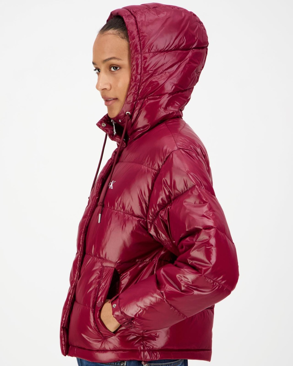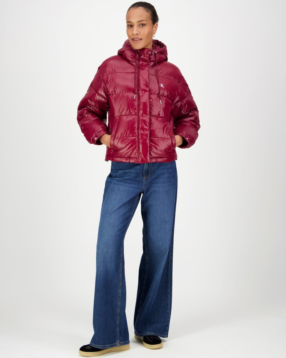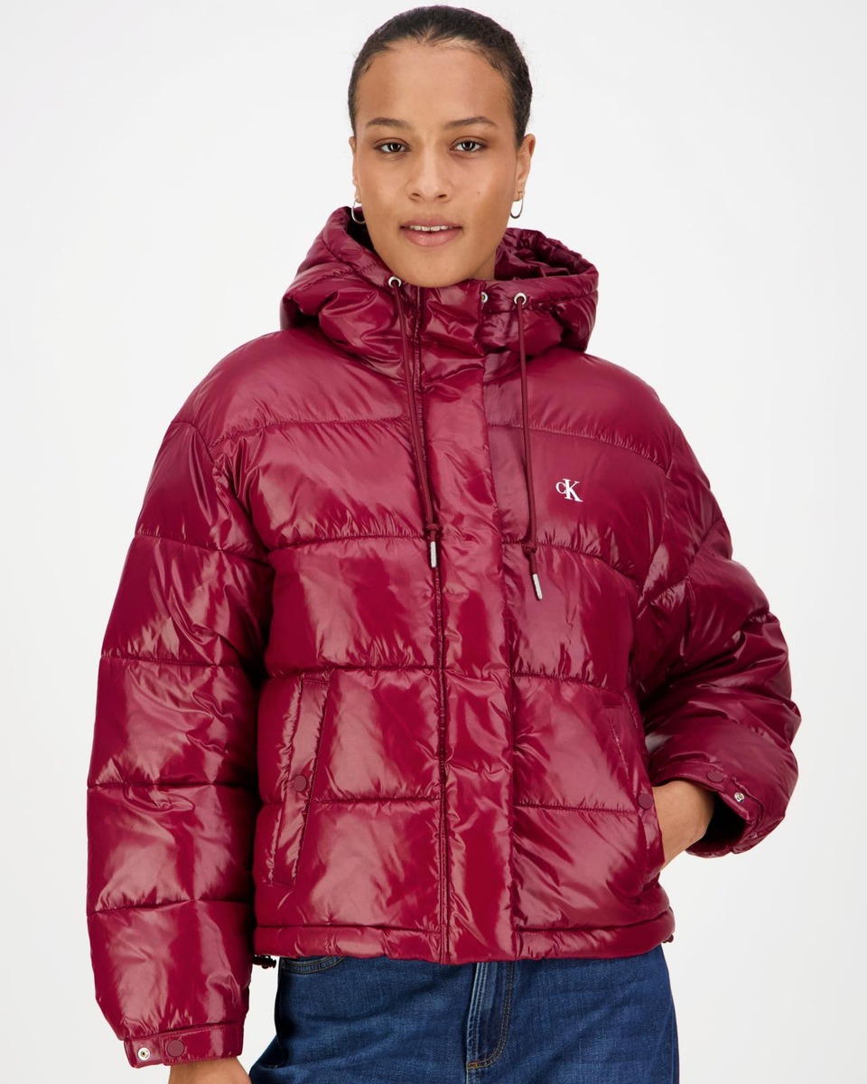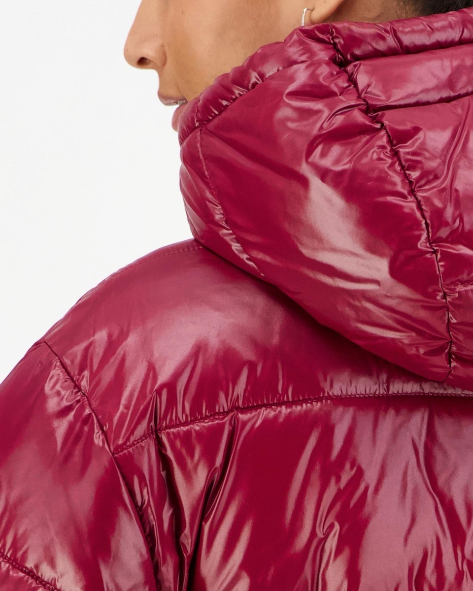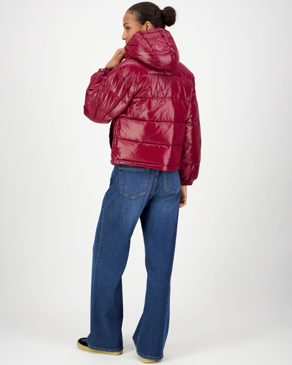 Upea kiiltopintainen lyhyt toppatakki jossa ihana kerman valkoinen ja trendikäs viininpunainen.