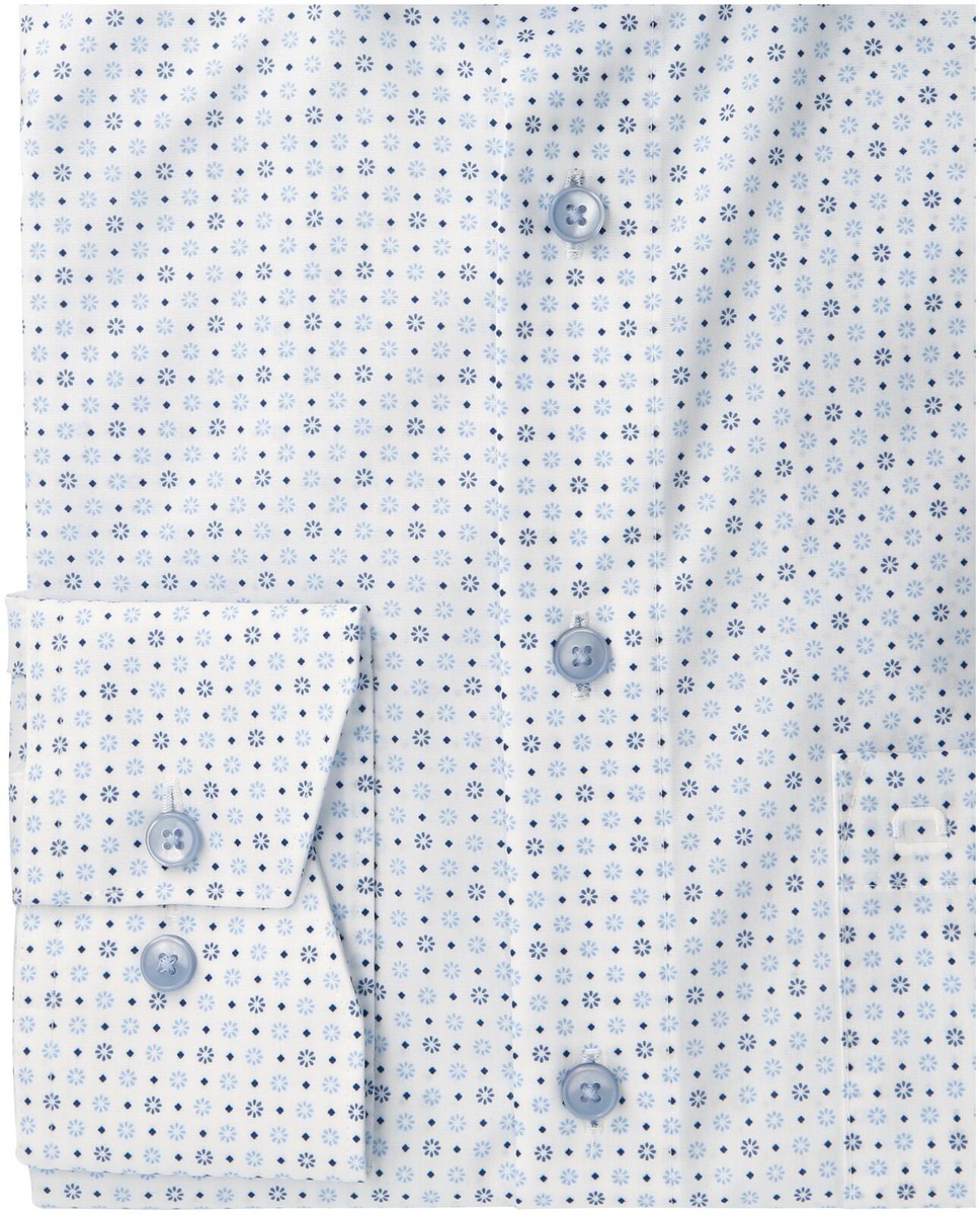 Laadukkaasta puuvillakankaasta valmistettu pienikuvioinen kauluspaita, jossa kauniit vaaleansiniset napit. Paidassa on klassinen Global Kent -kaulus, säädettävät mansetit ja rintatasku logo -brodeerauksella. Non Iron -viimeistelty paita on helppohoitoinen ja pysyy käytössä siistinä. Modern fit kauluspaidan runkoa on kevyesti kavennettu vyötäröltä; rinnan ympärys 126 cm ja vyötärön ympärys 112 cm koissa 41-42.