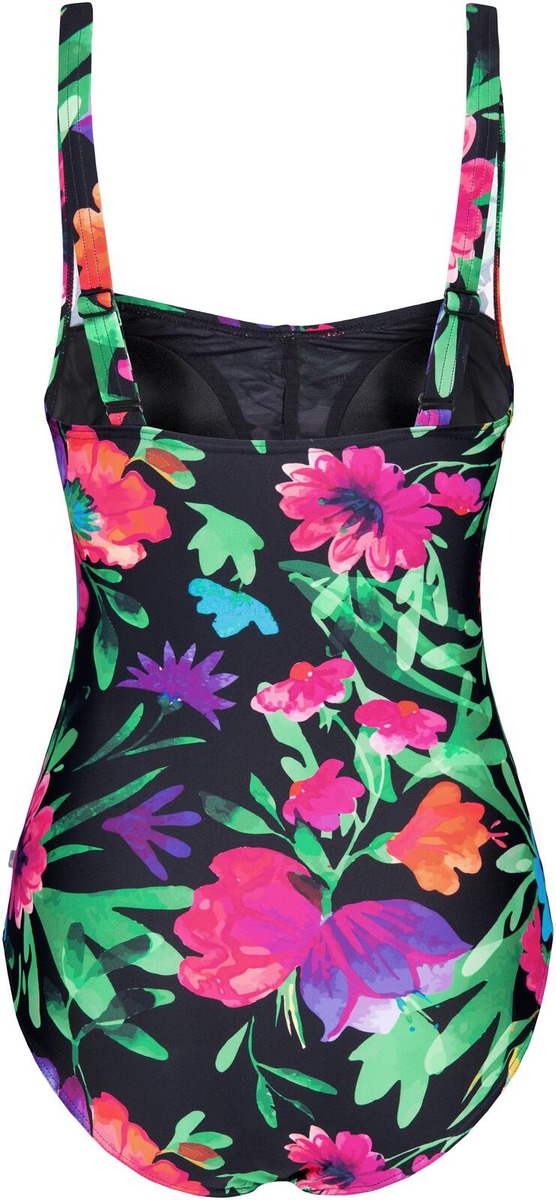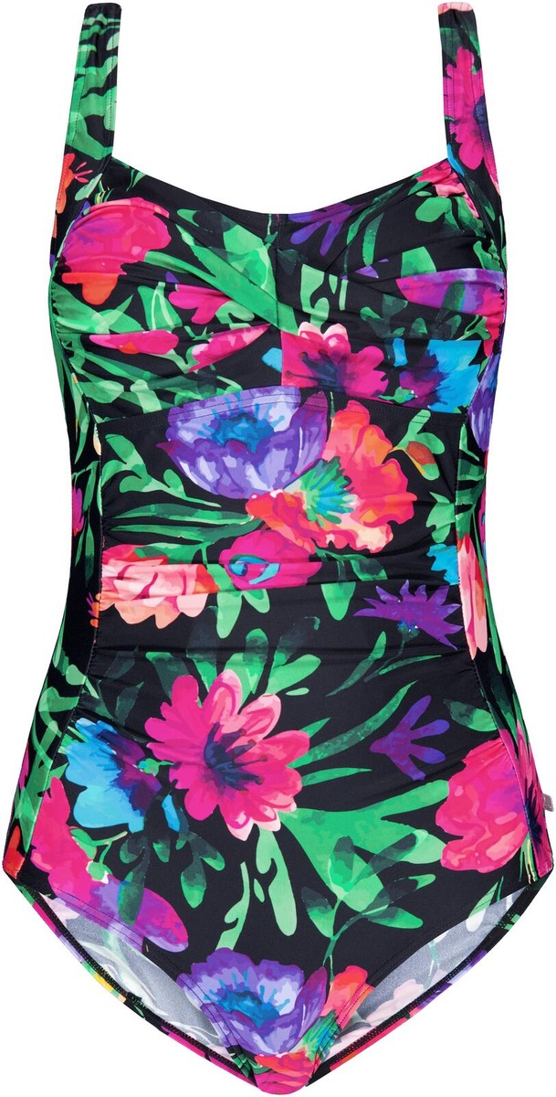 Actuelle Milah uimapuku, jossa kaunis leikkaus rypytyksillä. Upea kukkakuosi tuo tyyliä rantapäiviisi. Muotoileva, vatsaa tukeva mesh-vuori etuosassa. Yläosassa ohuet ja pehmeät kiinniommellut kupit. Leveä ja joustava kuminauha rinnan alla tuo tukea povelle. Säädettävät olkaimet. Haaraosa vuoritettu. Materiaali 80 % polyamidi, 20 % elastaani. Suosittelemme noudattamaan yleisiä uima-asujen huolto- ja pesutoimenpiteitä.