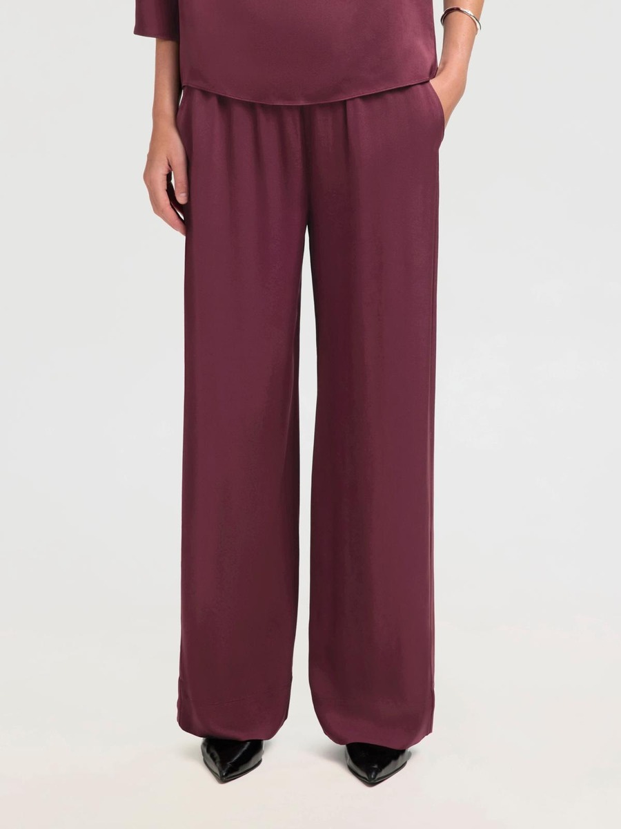 Leveälahkeiset kauniisti istuvat housut sivutaskuilla ja normaalikorkuisella vyötäröllä.