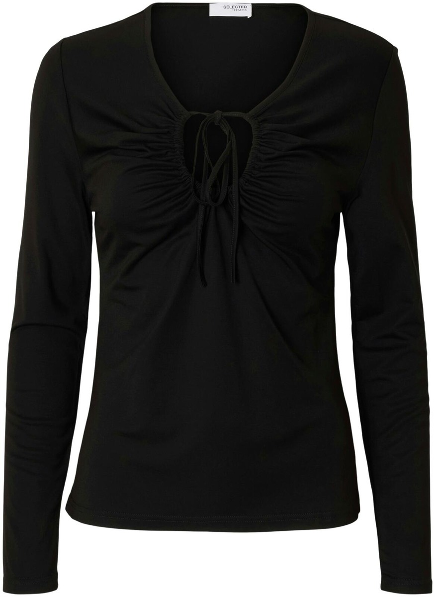 Trendikäs vartalonmyötäinen trikoopusero solmittavilla nauhoilla.