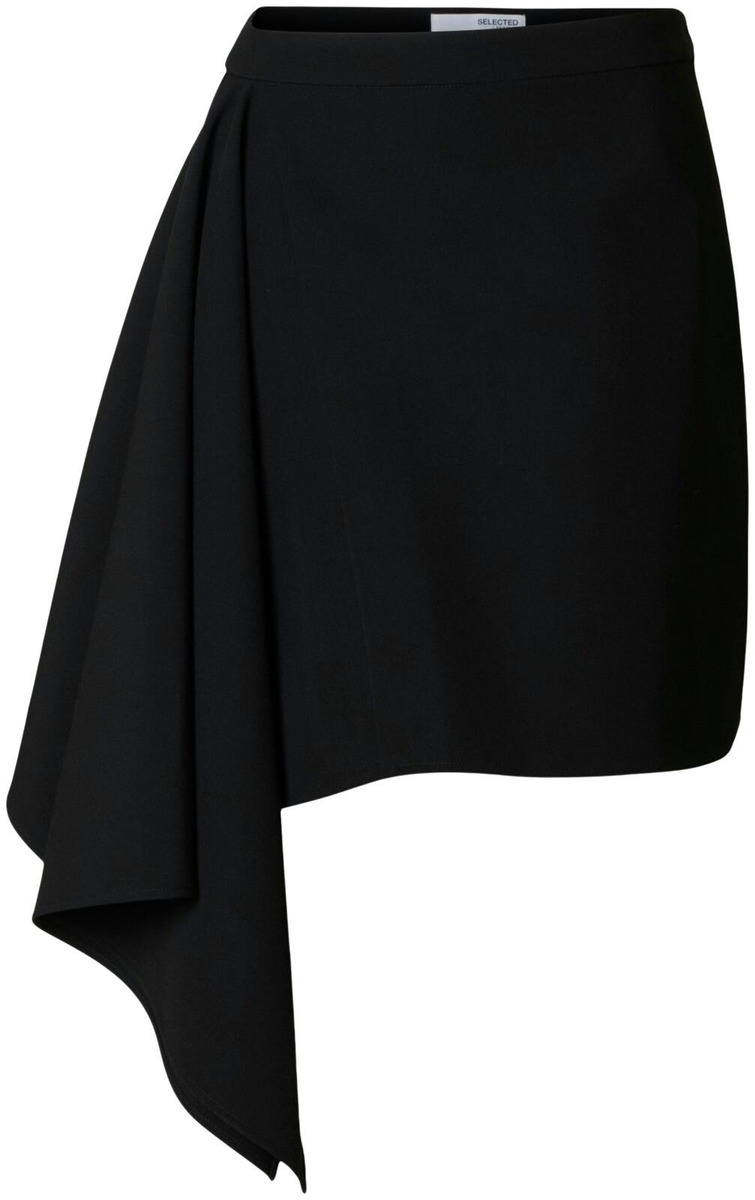 Korkeavyötäröinen hame vetoketjukiinnityksellä. Muodikas epäsymmetrinen helma.
