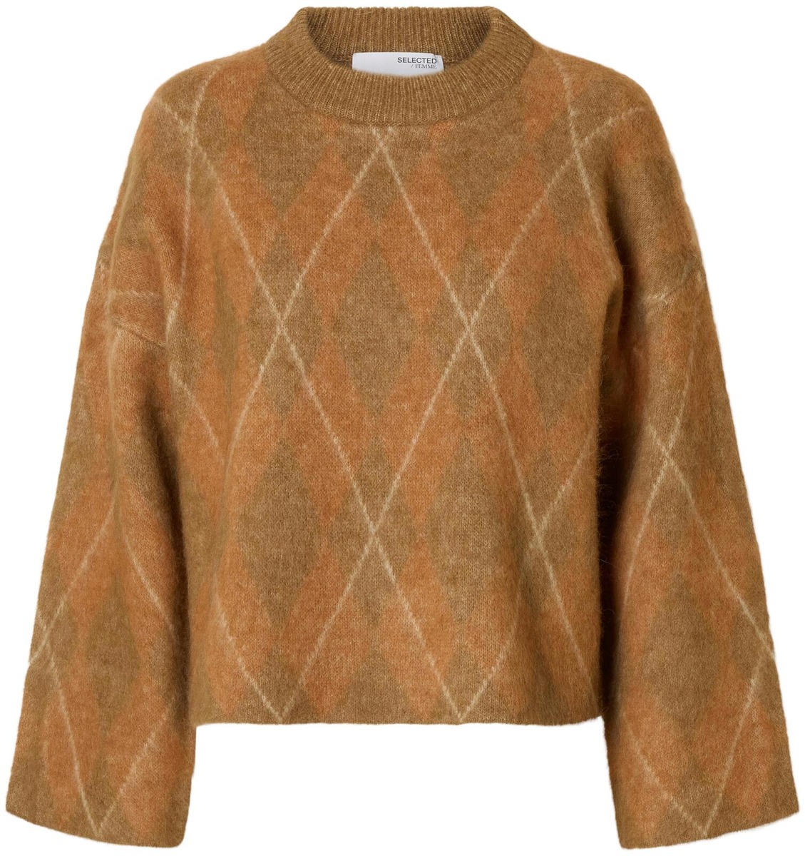 Ajaton ja tyylikäs argyleruutuinen neulepusero pitkillä hihoilla ja pyöreällä pääntiellä.